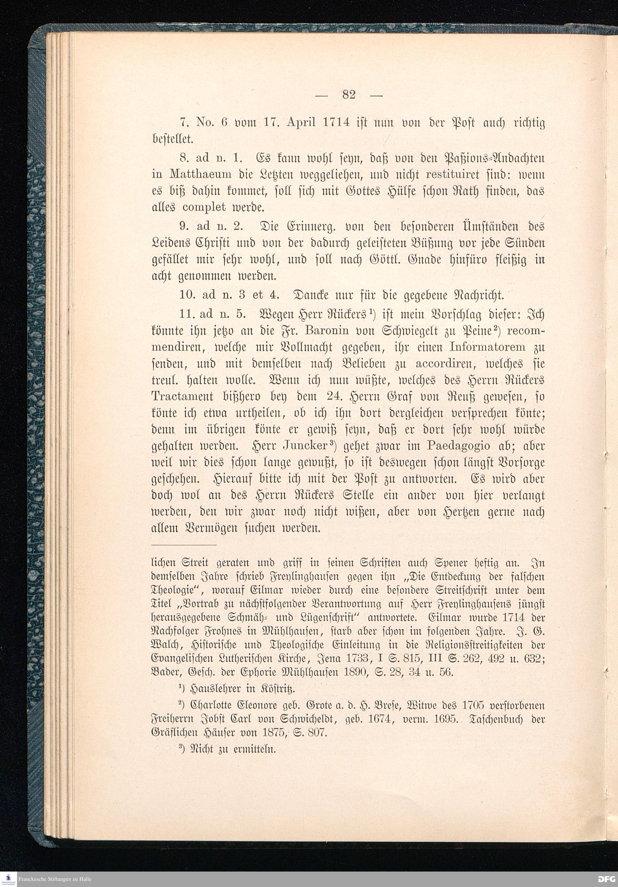 A.H.Franckes Briefe an den Grafen Heinrich XXIV. j.L. Reuß zu Köstritz und seine Gemahlin Eleonore aus den Jahren 1704 bis 1727 als Beitrag zur Geschichte des Pietismus herausgegeben von Dr.Berthold Schmidt Fürstl.Reuß j.L.Archivrat und Lic.theol. Otto Meusel Gymnasialoberlehrer in Schleiz. Leipzig, Verlag der Dürr'schen Buchhandlung 1905.
