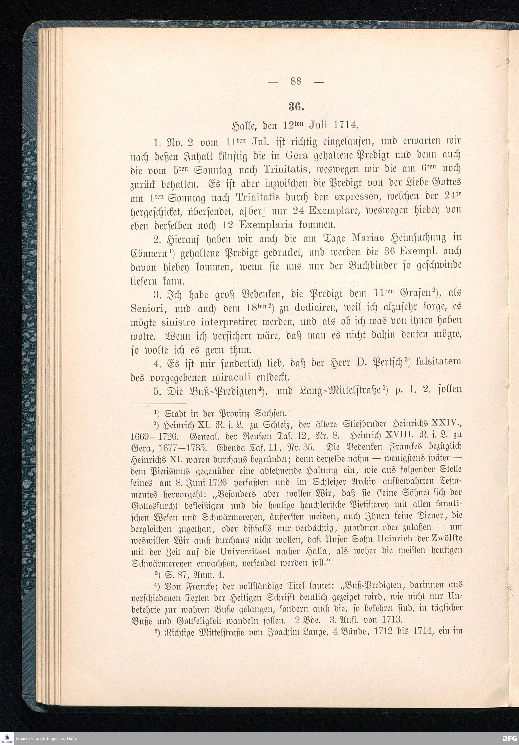 A.H.Franckes Briefe an den Grafen Heinrich XXIV. j.L. Reuß zu Köstritz und seine Gemahlin Eleonore aus den Jahren 1704 bis 1727 als Beitrag zur Geschichte des Pietismus herausgegeben von Dr.Berthold Schmidt Fürstl.Reuß j.L.Archivrat und Lic.theol. Otto Meusel Gymnasialoberlehrer in Schleiz. Leipzig, Verlag der Dürr'schen Buchhandlung 1905.