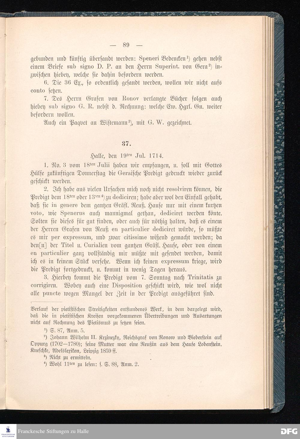 A.H.Franckes Briefe an den Grafen Heinrich XXIV. j.L. Reuß zu Köstritz und seine Gemahlin Eleonore aus den Jahren 1704 bis 1727 als Beitrag zur Geschichte des Pietismus herausgegeben von Dr.Berthold Schmidt Fürstl.Reuß j.L.Archivrat und Lic.theol. Otto Meusel Gymnasialoberlehrer in Schleiz. Leipzig, Verlag der Dürr'schen Buchhandlung 1905.