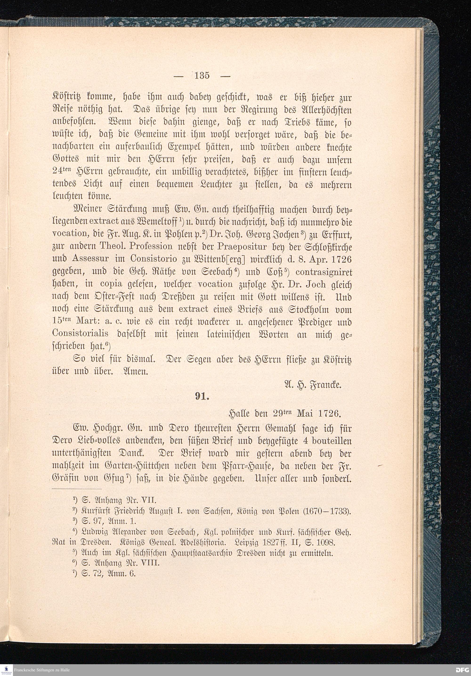 A.H.Franckes Briefe an den Grafen Heinrich XXIV. j.L. Reuß zu Köstritz und seine Gemahlin Eleonore aus den Jahren 1704 bis 1727 als Beitrag zur Geschichte des Pietismus herausgegeben von Dr.Berthold Schmidt Fürstl.Reuß j.L.Archivrat und Lic.theol. Otto Meusel Gymnasialoberlehrer in Schleiz. Leipzig, Verlag der Dürr'schen Buchhandlung 1905.