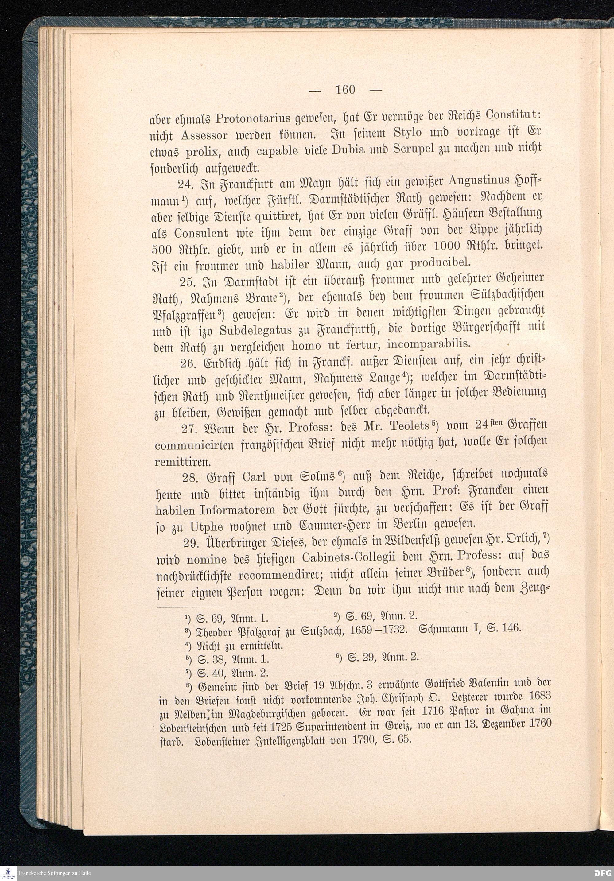 A.H.Franckes Briefe an den Grafen Heinrich XXIV. j.L. Reuß zu Köstritz und seine Gemahlin Eleonore aus den Jahren 1704 bis 1727 als Beitrag zur Geschichte des Pietismus herausgegeben von Dr.Berthold Schmidt Fürstl.Reuß j.L.Archivrat und Lic.theol. Otto Meusel Gymnasialoberlehrer in Schleiz. Leipzig, Verlag der Dürr'schen Buchhandlung 1905.