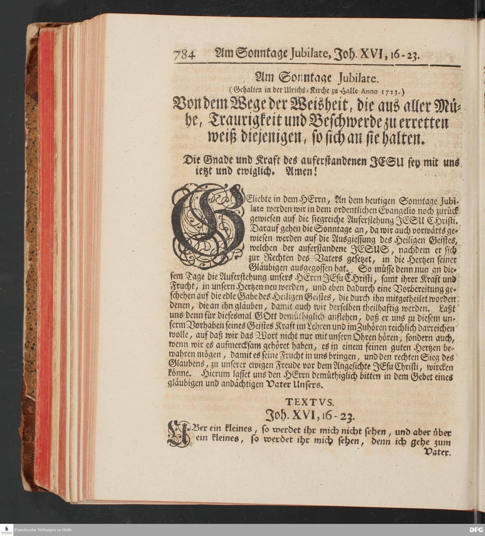 August Hermann Franckens, S.Theol.Prof.und Past. Sonn= und Fest=Tags=Predigten / Welche Theils in Halle, theils an verschiedenen auswärtigen Oertern, von wichtigen und auserlesenen Materien gehalten worden, Nebst Vorbereitung auf die hohen Feste und nützlichen Registern. Dritte Auflage. HALLE, gedruckt und verlegt im Wäysen=Hause MDCCXL. Mit Königl.Preuß.und Churfl.Brandenb.Privileg.