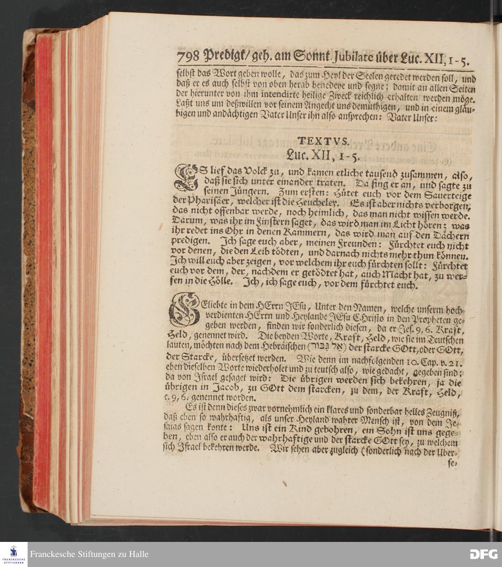 August Hermann Franckens, S.Theol.Prof.und Past. Sonn= und Fest=Tags=Predigten / Welche Theils in Halle, theils an verschiedenen auswärtigen Oertern, von wichtigen und auserlesenen Materien gehalten worden, Nebst Vorbereitung auf die hohen Feste und nützlichen Registern. Dritte Auflage. HALLE, gedruckt und verlegt im Wäysen=Hause MDCCXL. Mit Königl.Preuß.und Churfl.Brandenb.Privileg.