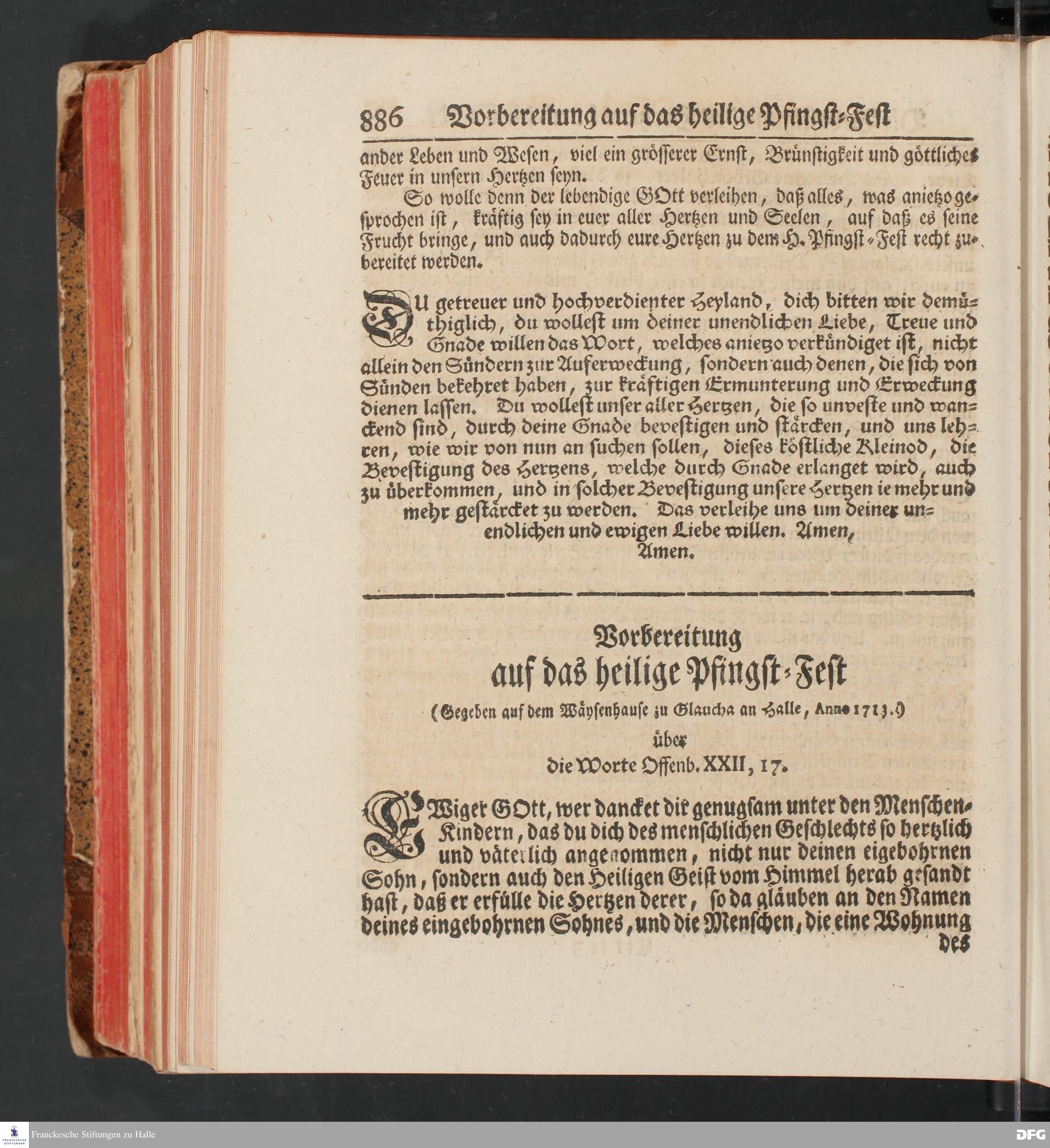 August Hermann Franckens, S.Theol.Prof.und Past. Sonn= und Fest=Tags=Predigten / Welche Theils in Halle, theils an verschiedenen auswärtigen Oertern, von wichtigen und auserlesenen Materien gehalten worden, Nebst Vorbereitung auf die hohen Feste und nützlichen Registern. Dritte Auflage. HALLE, gedruckt und verlegt im Wäysen=Hause MDCCXL. Mit Königl.Preuß.und Churfl.Brandenb.Privileg.