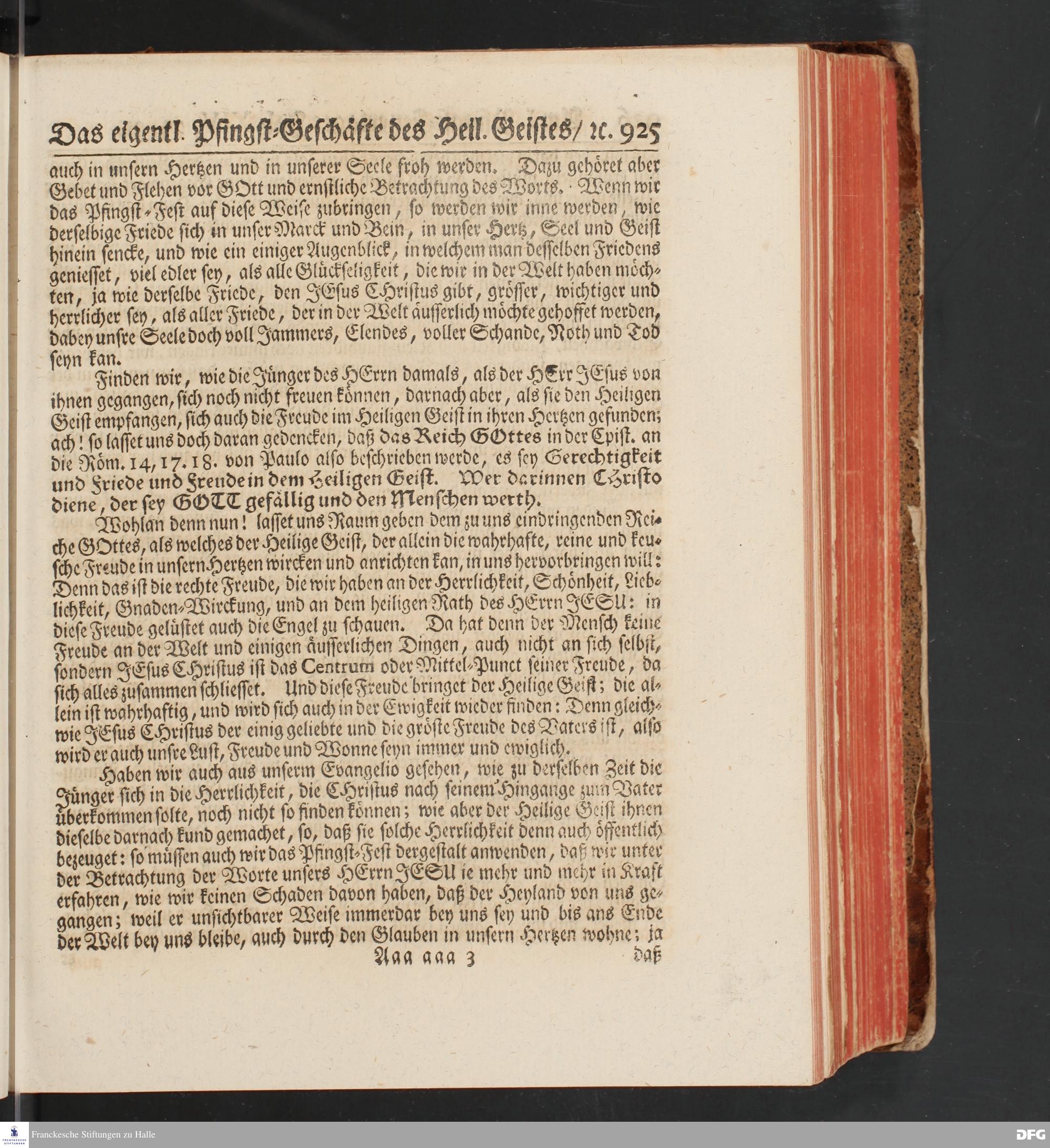 August Hermann Franckens, S.Theol.Prof.und Past. Sonn= und Fest=Tags=Predigten / Welche Theils in Halle, theils an verschiedenen auswärtigen Oertern, von wichtigen und auserlesenen Materien gehalten worden, Nebst Vorbereitung auf die hohen Feste und nützlichen Registern. Dritte Auflage. HALLE, gedruckt und verlegt im Wäysen=Hause MDCCXL. Mit Königl.Preuß.und Churfl.Brandenb.Privileg.
