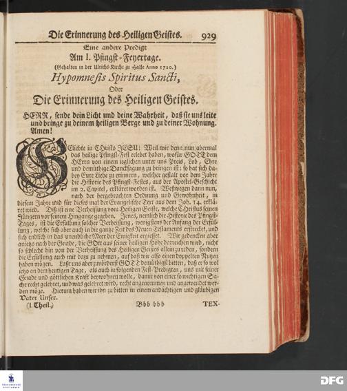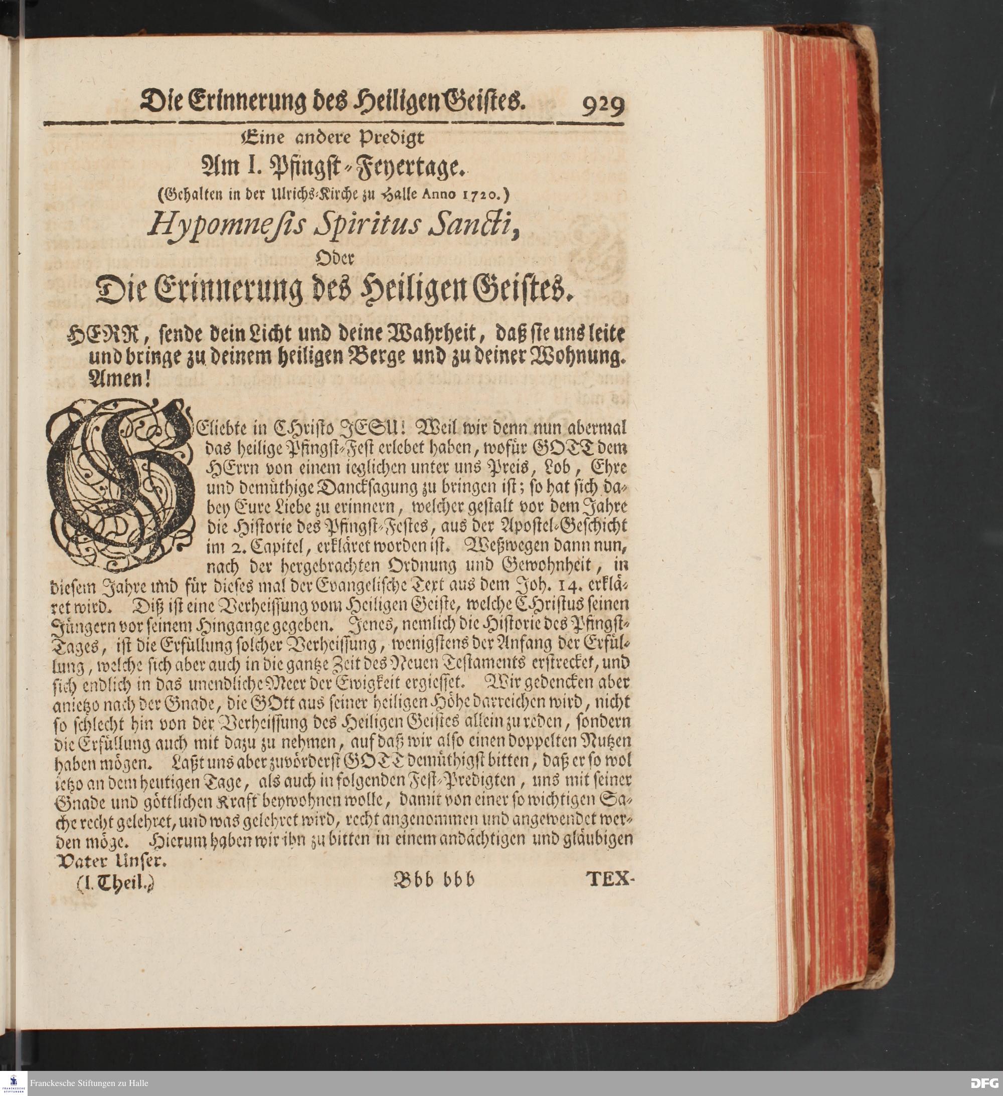 August Hermann Franckens, S.Theol.Prof.und Past. Sonn= und Fest=Tags=Predigten / Welche Theils in Halle, theils an verschiedenen auswärtigen Oertern, von wichtigen und auserlesenen Materien gehalten worden, Nebst Vorbereitung auf die hohen Feste und nützlichen Registern. Dritte Auflage. HALLE, gedruckt und verlegt im Wäysen=Hause MDCCXL. Mit Königl.Preuß.und Churfl.Brandenb.Privileg.