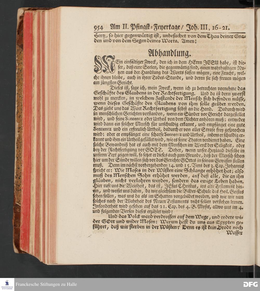 August Hermann Franckens, S.Theol.Prof.und Past. Sonn= und Fest=Tags=Predigten / Welche Theils in Halle, theils an verschiedenen auswärtigen Oertern, von wichtigen und auserlesenen Materien gehalten worden, Nebst Vorbereitung auf die hohen Feste und nützlichen Registern. Dritte Auflage. HALLE, gedruckt und verlegt im Wäysen=Hause MDCCXL. Mit Königl.Preuß.und Churfl.Brandenb.Privileg.