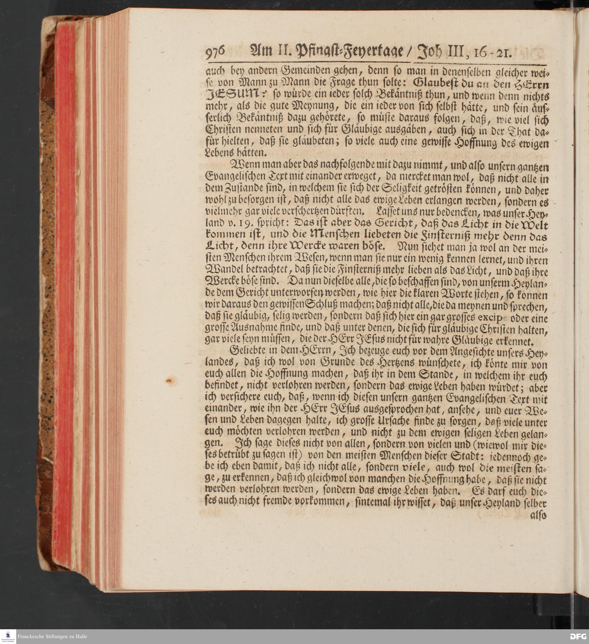 August Hermann Franckens, S.Theol.Prof.und Past. Sonn= und Fest=Tags=Predigten / Welche Theils in Halle, theils an verschiedenen auswärtigen Oertern, von wichtigen und auserlesenen Materien gehalten worden, Nebst Vorbereitung auf die hohen Feste und nützlichen Registern. Dritte Auflage. HALLE, gedruckt und verlegt im Wäysen=Hause MDCCXL. Mit Königl.Preuß.und Churfl.Brandenb.Privileg.