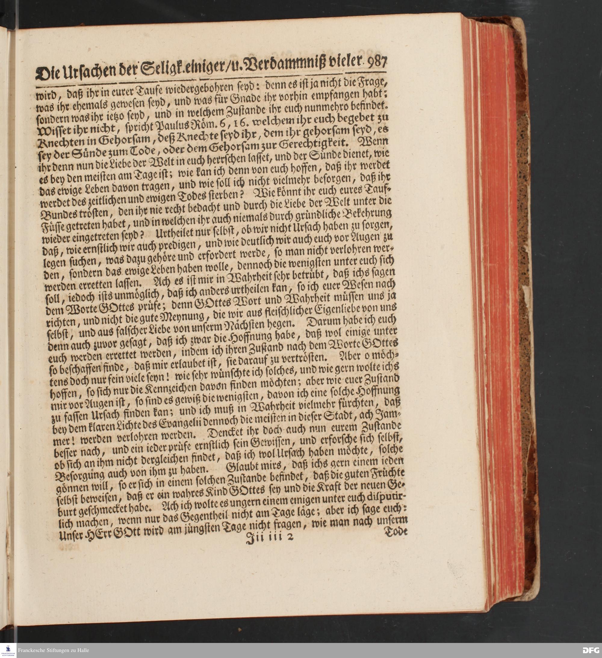 August Hermann Franckens, S.Theol.Prof.und Past. Sonn= und Fest=Tags=Predigten / Welche Theils in Halle, theils an verschiedenen auswärtigen Oertern, von wichtigen und auserlesenen Materien gehalten worden, Nebst Vorbereitung auf die hohen Feste und nützlichen Registern. Dritte Auflage. HALLE, gedruckt und verlegt im Wäysen=Hause MDCCXL. Mit Königl.Preuß.und Churfl.Brandenb.Privileg.