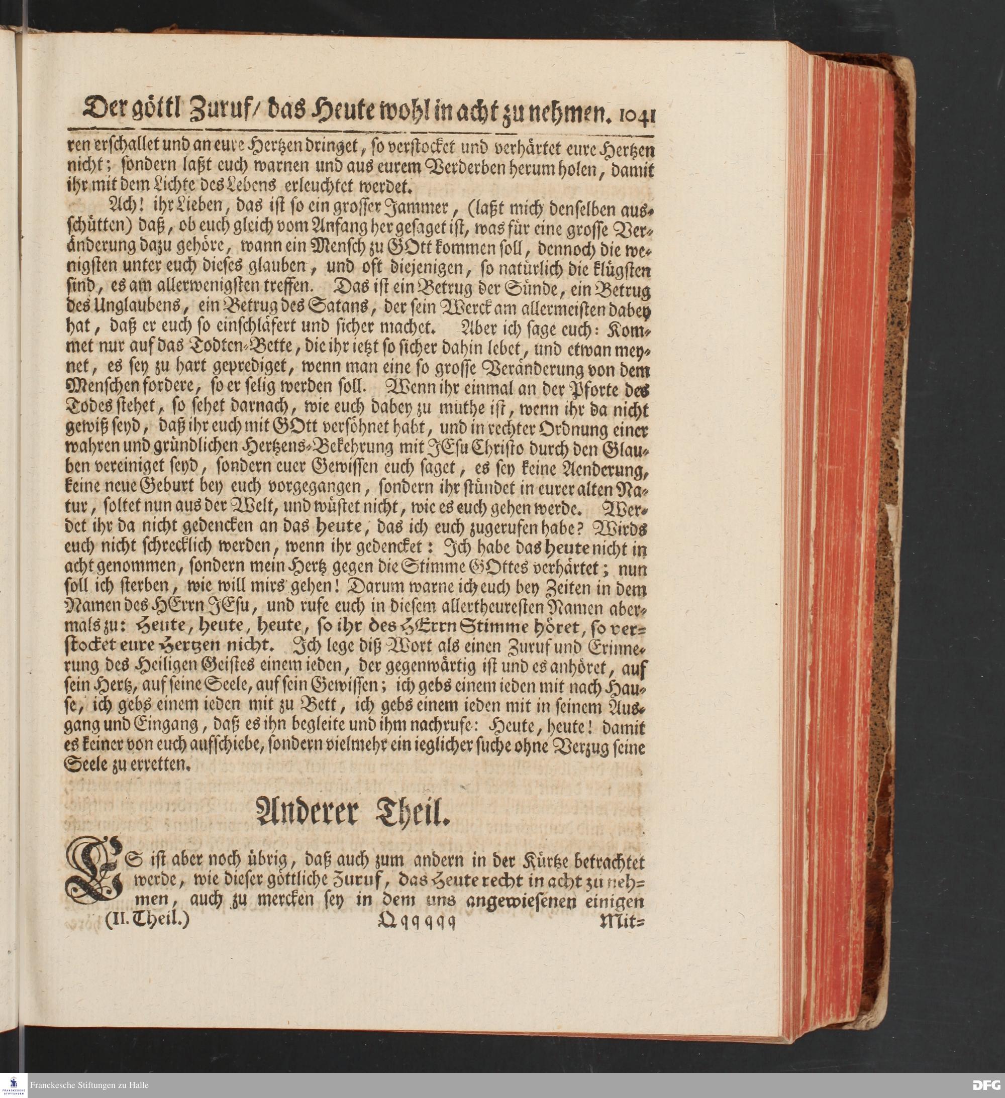 August Hermann Franckens, S.Theol.Prof.und Past. Sonn= und Fest=Tags=Predigten / Welche Theils in Halle, theils an verschiedenen auswärtigen Oertern, von wichtigen und auserlesenen Materien gehalten worden, Nebst Vorbereitung auf die hohen Feste und nützlichen Registern. Dritte Auflage. HALLE, gedruckt und verlegt im Wäysen=Hause MDCCXL. Mit Königl.Preuß.und Churfl.Brandenb.Privileg.