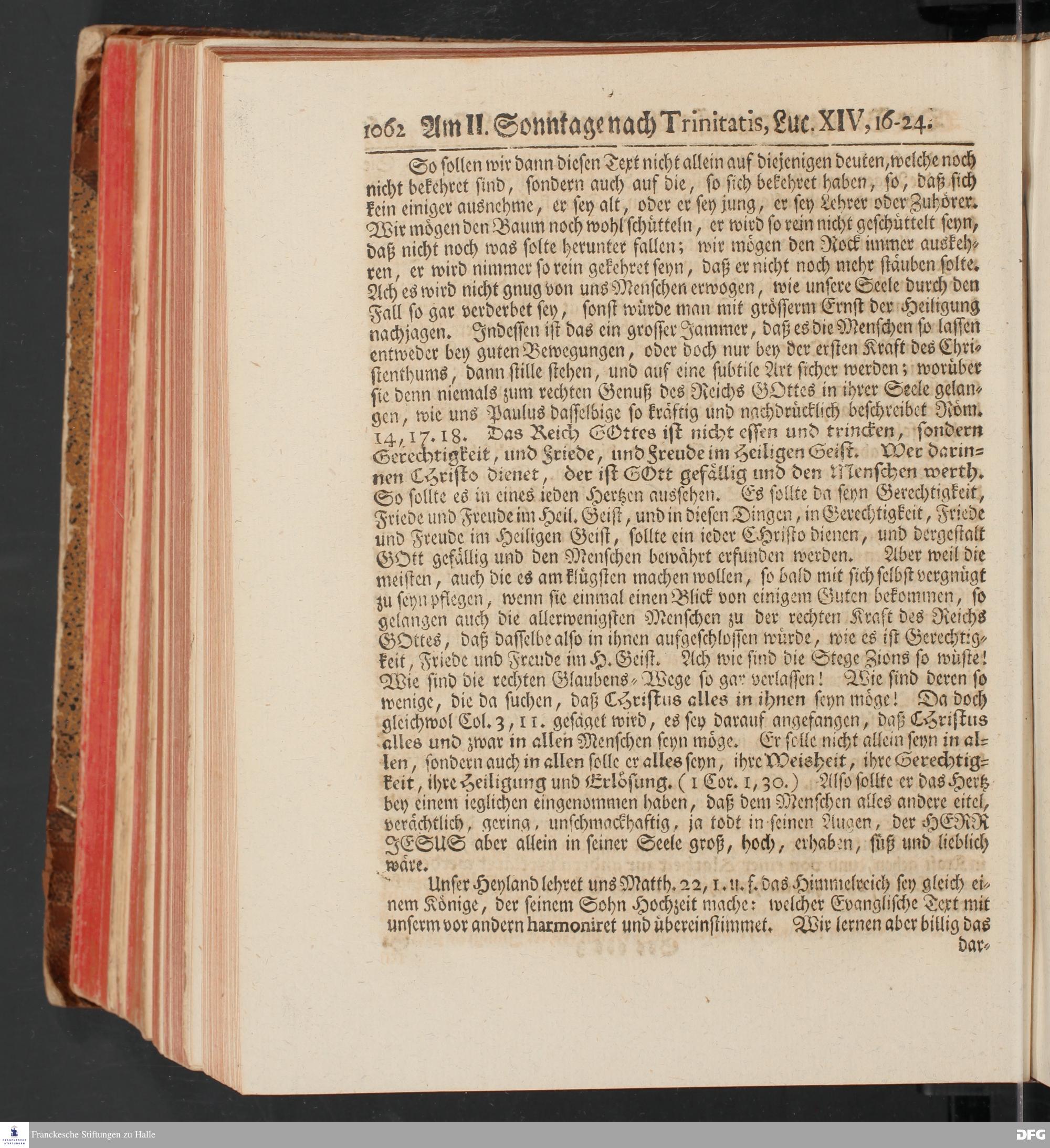 August Hermann Franckens, S.Theol.Prof.und Past. Sonn= und Fest=Tags=Predigten / Welche Theils in Halle, theils an verschiedenen auswärtigen Oertern, von wichtigen und auserlesenen Materien gehalten worden, Nebst Vorbereitung auf die hohen Feste und nützlichen Registern. Dritte Auflage. HALLE, gedruckt und verlegt im Wäysen=Hause MDCCXL. Mit Königl.Preuß.und Churfl.Brandenb.Privileg.
