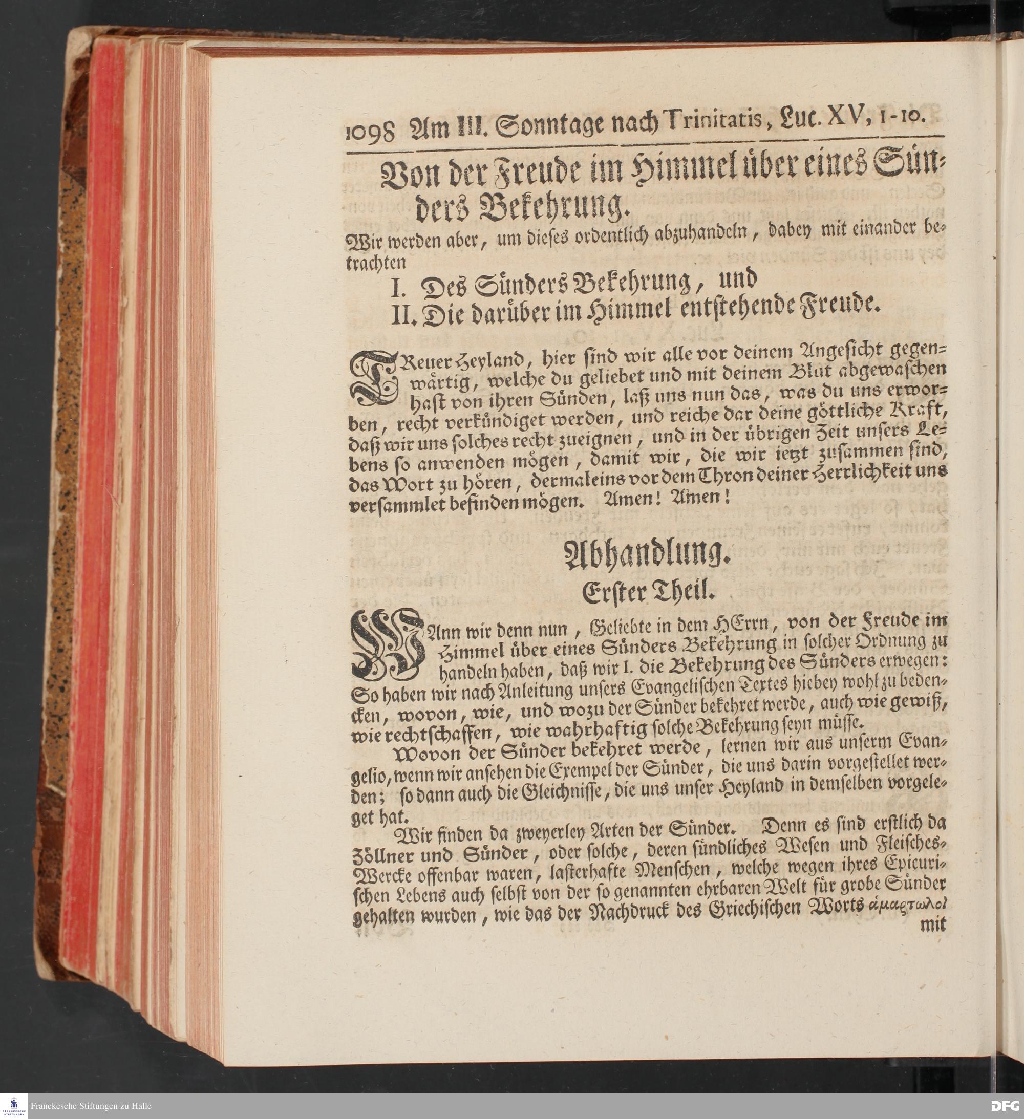 August Hermann Franckens, S.Theol.Prof.und Past. Sonn= und Fest=Tags=Predigten / Welche Theils in Halle, theils an verschiedenen auswärtigen Oertern, von wichtigen und auserlesenen Materien gehalten worden, Nebst Vorbereitung auf die hohen Feste und nützlichen Registern. Dritte Auflage. HALLE, gedruckt und verlegt im Wäysen=Hause MDCCXL. Mit Königl.Preuß.und Churfl.Brandenb.Privileg.