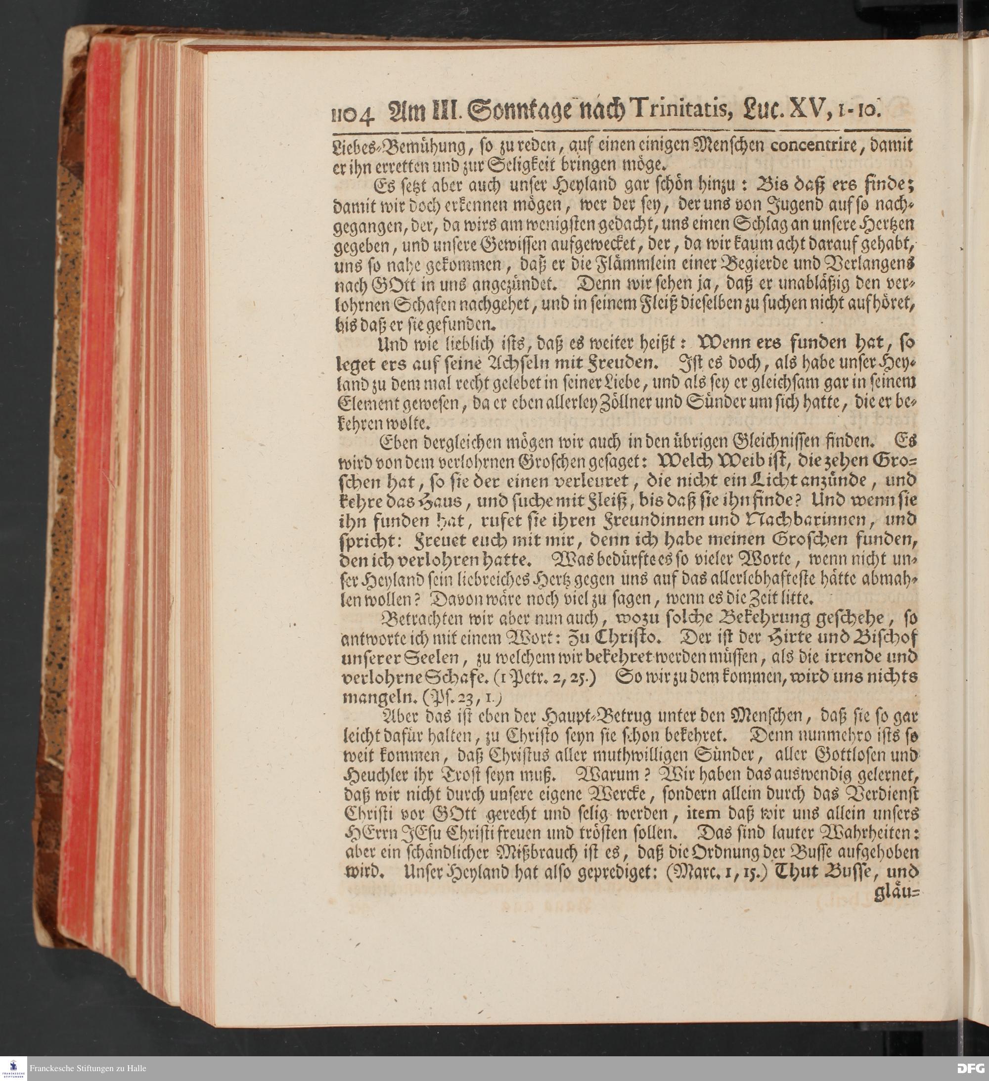 August Hermann Franckens, S.Theol.Prof.und Past. Sonn= und Fest=Tags=Predigten / Welche Theils in Halle, theils an verschiedenen auswärtigen Oertern, von wichtigen und auserlesenen Materien gehalten worden, Nebst Vorbereitung auf die hohen Feste und nützlichen Registern. Dritte Auflage. HALLE, gedruckt und verlegt im Wäysen=Hause MDCCXL. Mit Königl.Preuß.und Churfl.Brandenb.Privileg.
