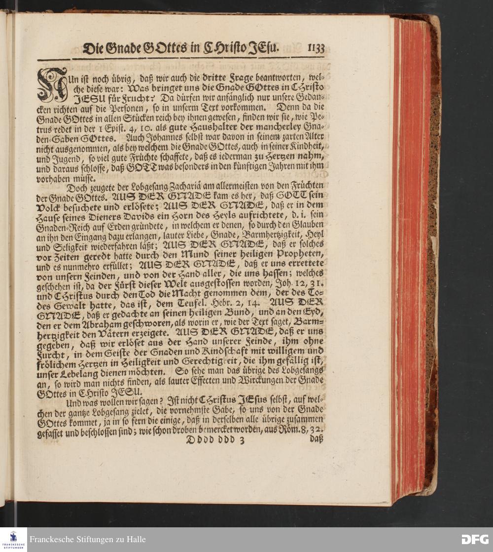 August Hermann Franckens, S.Theol.Prof.und Past. Sonn= und Fest=Tags=Predigten / Welche Theils in Halle, theils an verschiedenen auswärtigen Oertern, von wichtigen und auserlesenen Materien gehalten worden, Nebst Vorbereitung auf die hohen Feste und nützlichen Registern. Dritte Auflage. HALLE, gedruckt und verlegt im Wäysen=Hause MDCCXL. Mit Königl.Preuß.und Churfl.Brandenb.Privileg.