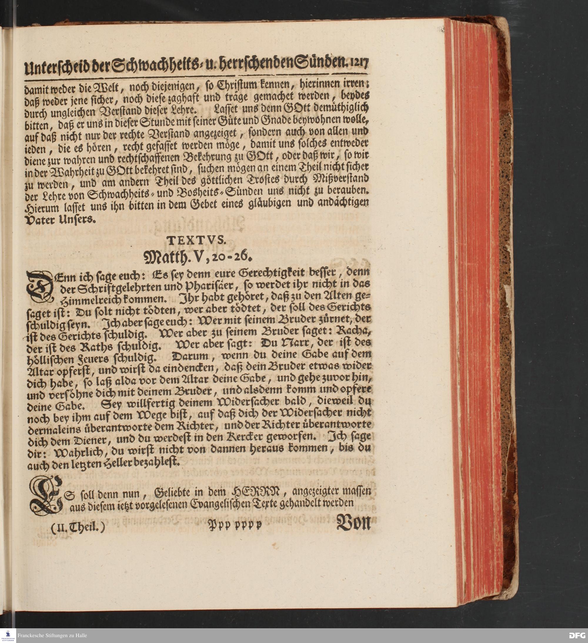 August Hermann Franckens, S.Theol.Prof.und Past. Sonn= und Fest=Tags=Predigten / Welche Theils in Halle, theils an verschiedenen auswärtigen Oertern, von wichtigen und auserlesenen Materien gehalten worden, Nebst Vorbereitung auf die hohen Feste und nützlichen Registern. Dritte Auflage. HALLE, gedruckt und verlegt im Wäysen=Hause MDCCXL. Mit Königl.Preuß.und Churfl.Brandenb.Privileg.