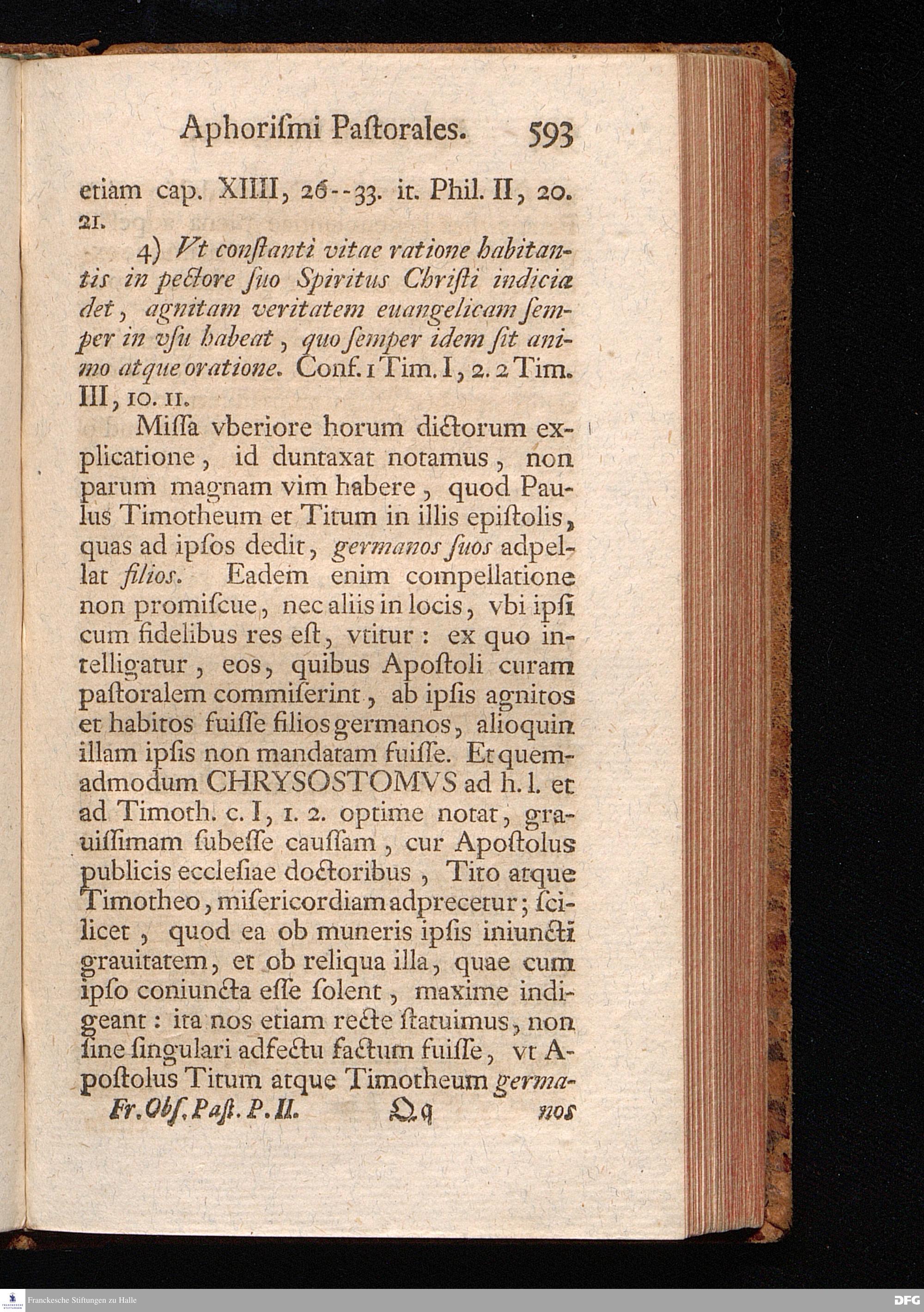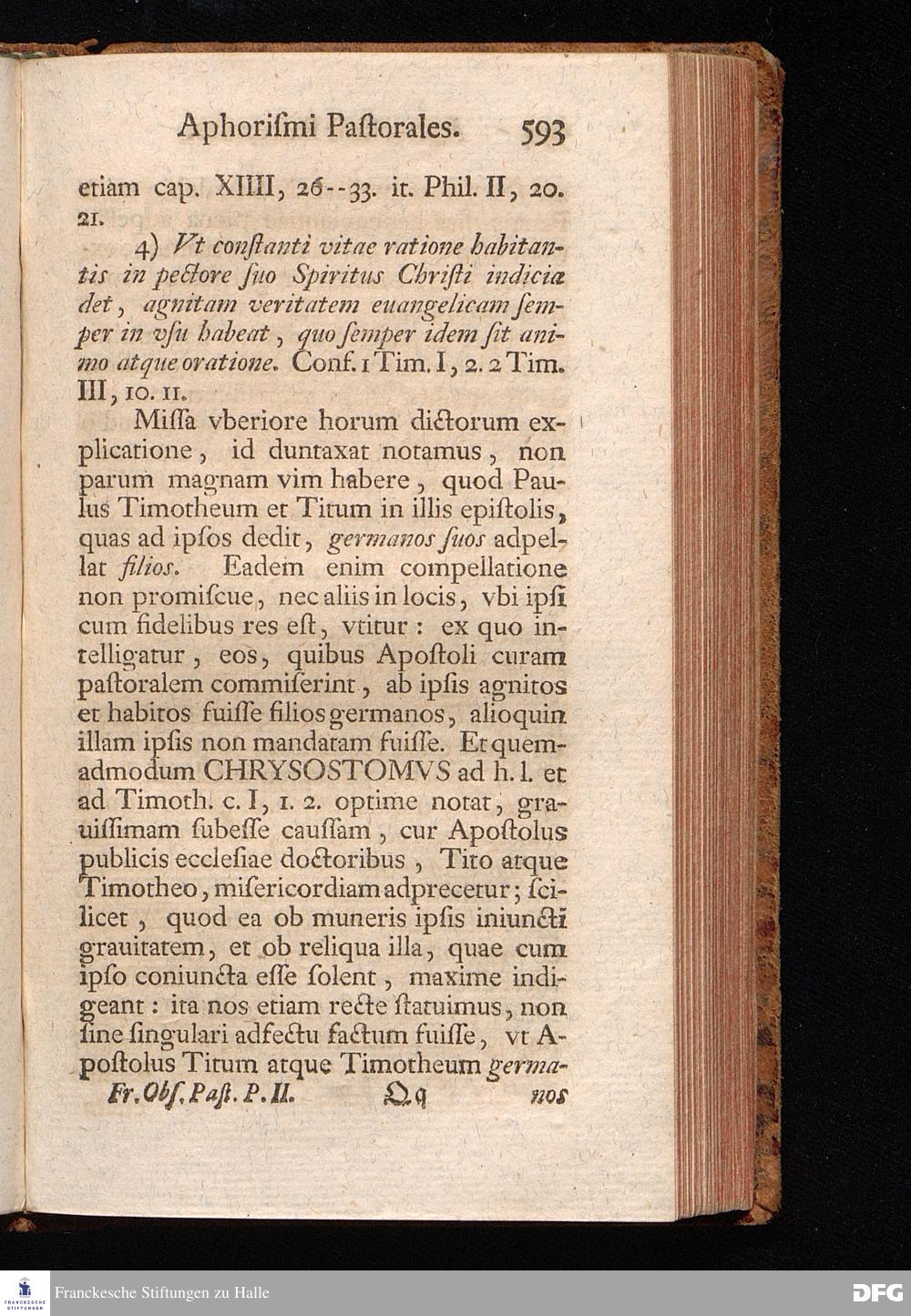 August Herr[!]mann Franckens, Weyl.S.Theol.Prof.Past.Vlric.et Schol. COLLEGIVM PASTORALE über D. IO. LVDOV. HARTMANNI PASTORALE EVANGELICVM. Anderer Theil; Nebst desselben Aus der Epistel an den Titum gezogenen und mit mehrerm erläuterten APHORISMIS PASTORALIBVS: herausgegeben von Gotthilf August Francken S.Theol.Doct.und Prof.Publ.Ord.der ersten Dioeces des Saal-Creyses Insp.und Pr.zur L.Fr. HALLE, In Verlegung des Wäysenhauses, 1743.
