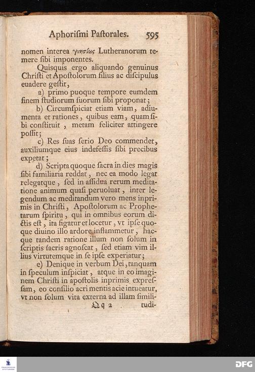 August Herr[!]mann Franckens, Weyl.S.Theol.Prof.Past.Vlric.et Schol. COLLEGIVM PASTORALE über D. IO. LVDOV. HARTMANNI PASTORALE EVANGELICVM. Anderer Theil; Nebst desselben Aus der Epistel an den Titum gezogenen und mit mehrerm erläuterten APHORISMIS PASTORALIBVS: herausgegeben von Gotthilf August Francken S.Theol.Doct.und Prof.Publ.Ord.der ersten Dioeces des Saal-Creyses Insp.und Pr.zur L.Fr. HALLE, In Verlegung des Wäysenhauses, 1743.