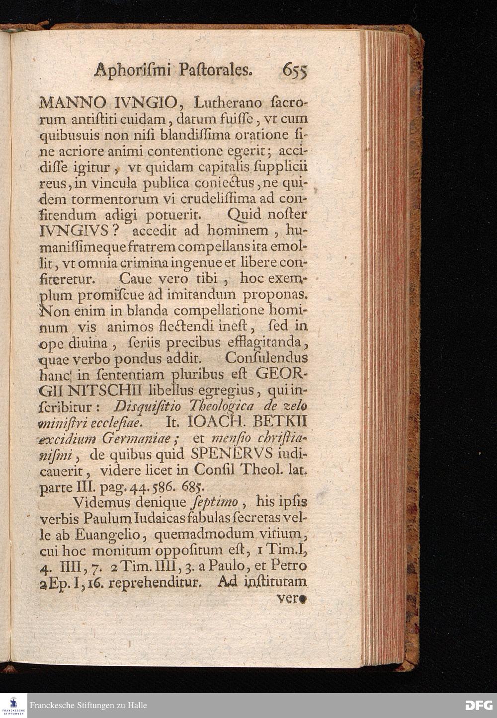 August Herr[!]mann Franckens, Weyl.S.Theol.Prof.Past.Vlric.et Schol. COLLEGIVM PASTORALE über D. IO. LVDOV. HARTMANNI PASTORALE EVANGELICVM. Anderer Theil; Nebst desselben Aus der Epistel an den Titum gezogenen und mit mehrerm erläuterten APHORISMIS PASTORALIBVS: herausgegeben von Gotthilf August Francken S.Theol.Doct.und Prof.Publ.Ord.der ersten Dioeces des Saal-Creyses Insp.und Pr.zur L.Fr. HALLE, In Verlegung des Wäysenhauses, 1743.