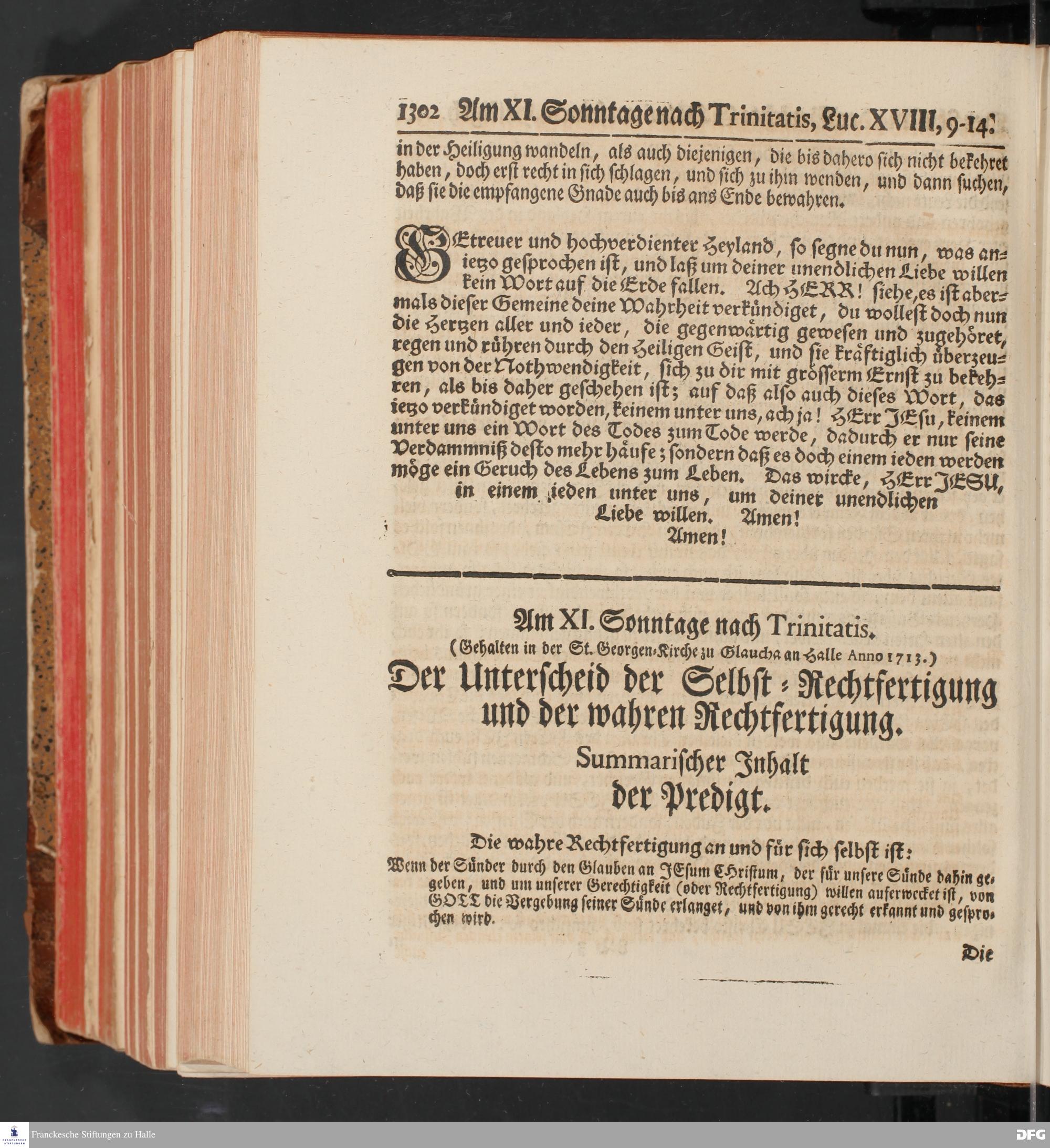 August Hermann Franckens, S.Theol.Prof.und Past. Sonn= und Fest=Tags=Predigten / Welche Theils in Halle, theils an verschiedenen auswärtigen Oertern, von wichtigen und auserlesenen Materien gehalten worden, Nebst Vorbereitung auf die hohen Feste und nützlichen Registern. Dritte Auflage. HALLE, gedruckt und verlegt im Wäysen=Hause MDCCXL. Mit Königl.Preuß.und Churfl.Brandenb.Privileg.
