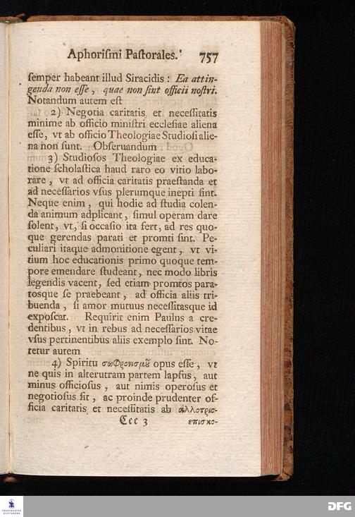 August Herr[!]mann Franckens, Weyl.S.Theol.Prof.Past.Vlric.et Schol. COLLEGIVM PASTORALE über D. IO. LVDOV. HARTMANNI PASTORALE EVANGELICVM. Anderer Theil; Nebst desselben Aus der Epistel an den Titum gezogenen und mit mehrerm erläuterten APHORISMIS PASTORALIBVS: herausgegeben von Gotthilf August Francken S.Theol.Doct.und Prof.Publ.Ord.der ersten Dioeces des Saal-Creyses Insp.und Pr.zur L.Fr. HALLE, In Verlegung des Wäysenhauses, 1743.