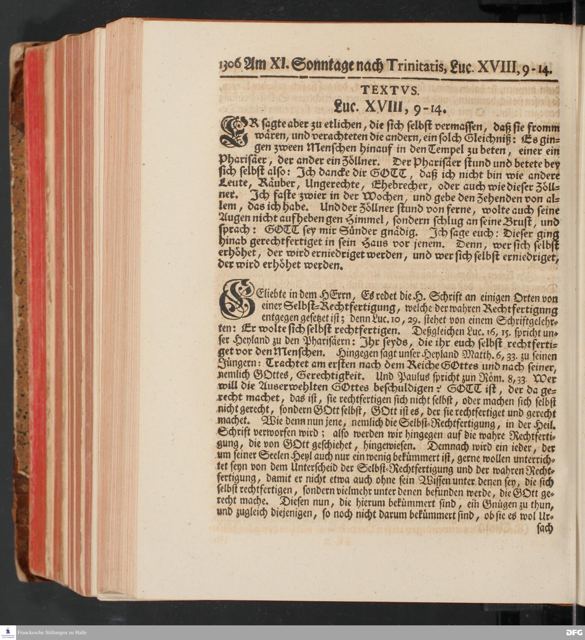 August Hermann Franckens, S.Theol.Prof.und Past. Sonn= und Fest=Tags=Predigten / Welche Theils in Halle, theils an verschiedenen auswärtigen Oertern, von wichtigen und auserlesenen Materien gehalten worden, Nebst Vorbereitung auf die hohen Feste und nützlichen Registern. Dritte Auflage. HALLE, gedruckt und verlegt im Wäysen=Hause MDCCXL. Mit Königl.Preuß.und Churfl.Brandenb.Privileg.