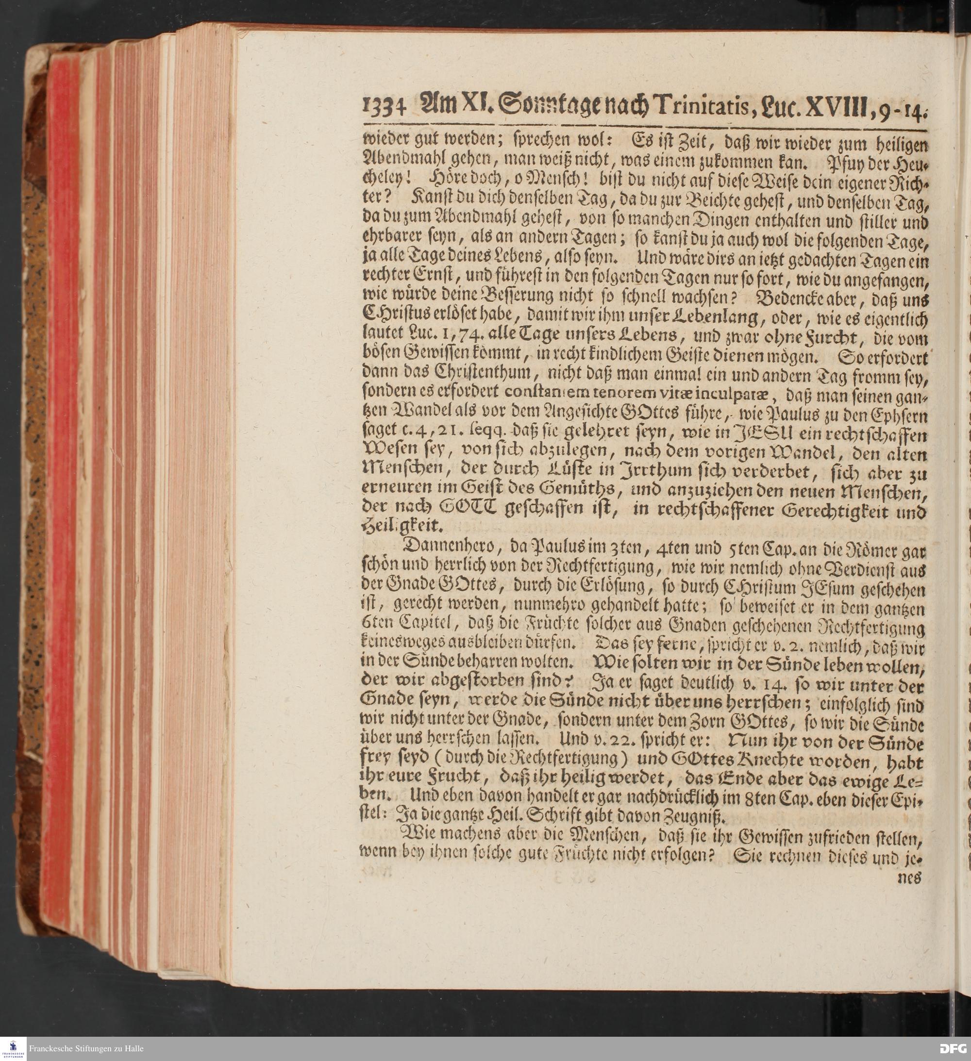 August Hermann Franckens, S.Theol.Prof.und Past. Sonn= und Fest=Tags=Predigten / Welche Theils in Halle, theils an verschiedenen auswärtigen Oertern, von wichtigen und auserlesenen Materien gehalten worden, Nebst Vorbereitung auf die hohen Feste und nützlichen Registern. Dritte Auflage. HALLE, gedruckt und verlegt im Wäysen=Hause MDCCXL. Mit Königl.Preuß.und Churfl.Brandenb.Privileg.