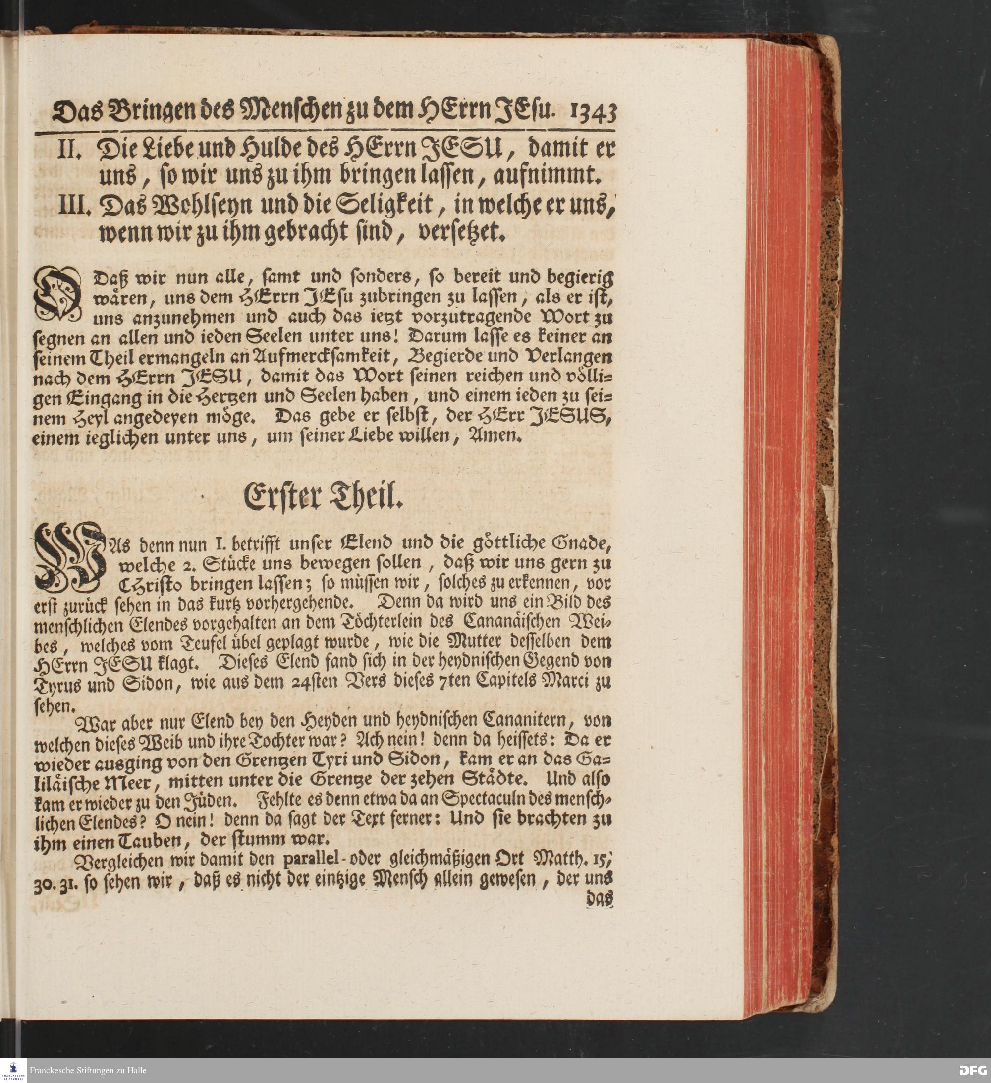 August Hermann Franckens, S.Theol.Prof.und Past. Sonn= und Fest=Tags=Predigten / Welche Theils in Halle, theils an verschiedenen auswärtigen Oertern, von wichtigen und auserlesenen Materien gehalten worden, Nebst Vorbereitung auf die hohen Feste und nützlichen Registern. Dritte Auflage. HALLE, gedruckt und verlegt im Wäysen=Hause MDCCXL. Mit Königl.Preuß.und Churfl.Brandenb.Privileg.
