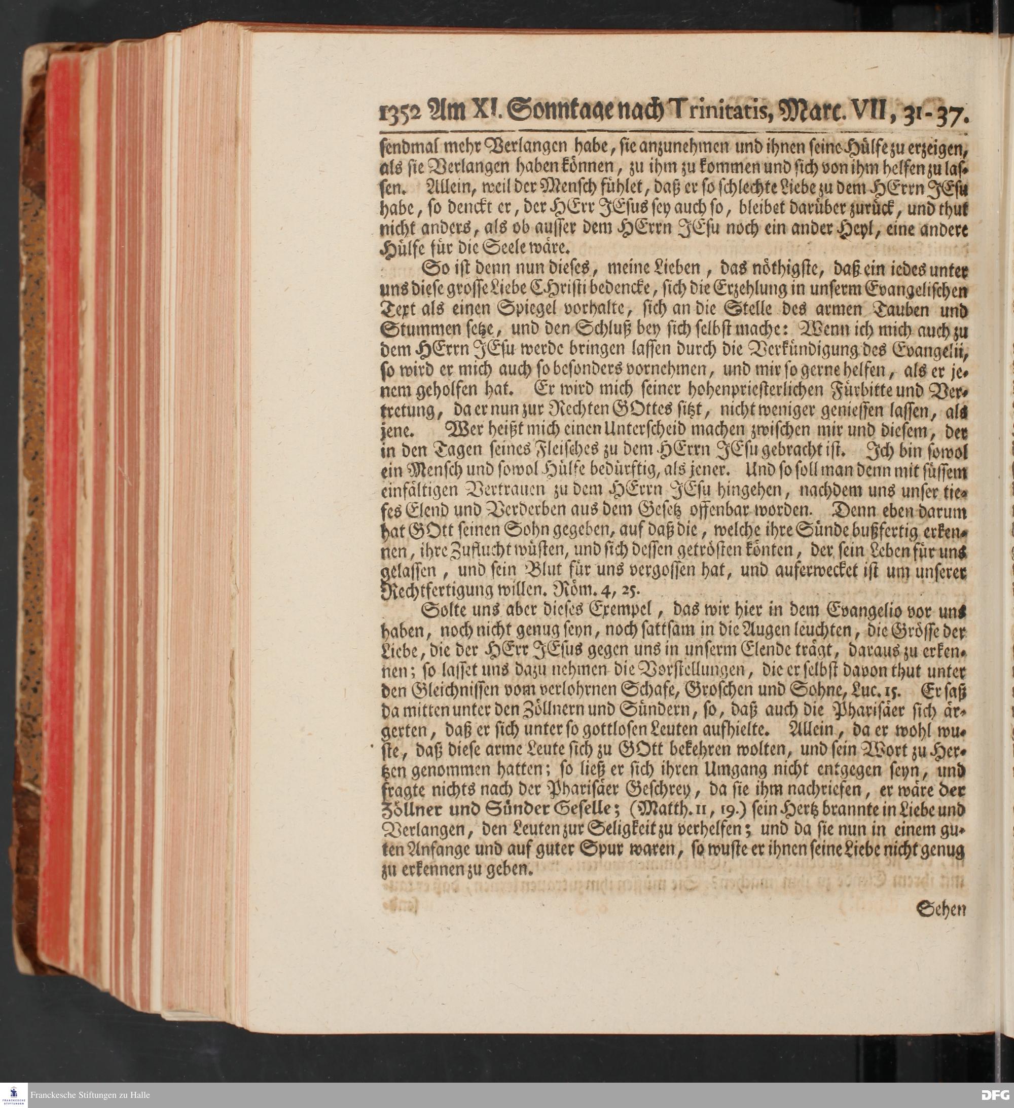 August Hermann Franckens, S.Theol.Prof.und Past. Sonn= und Fest=Tags=Predigten / Welche Theils in Halle, theils an verschiedenen auswärtigen Oertern, von wichtigen und auserlesenen Materien gehalten worden, Nebst Vorbereitung auf die hohen Feste und nützlichen Registern. Dritte Auflage. HALLE, gedruckt und verlegt im Wäysen=Hause MDCCXL. Mit Königl.Preuß.und Churfl.Brandenb.Privileg.
