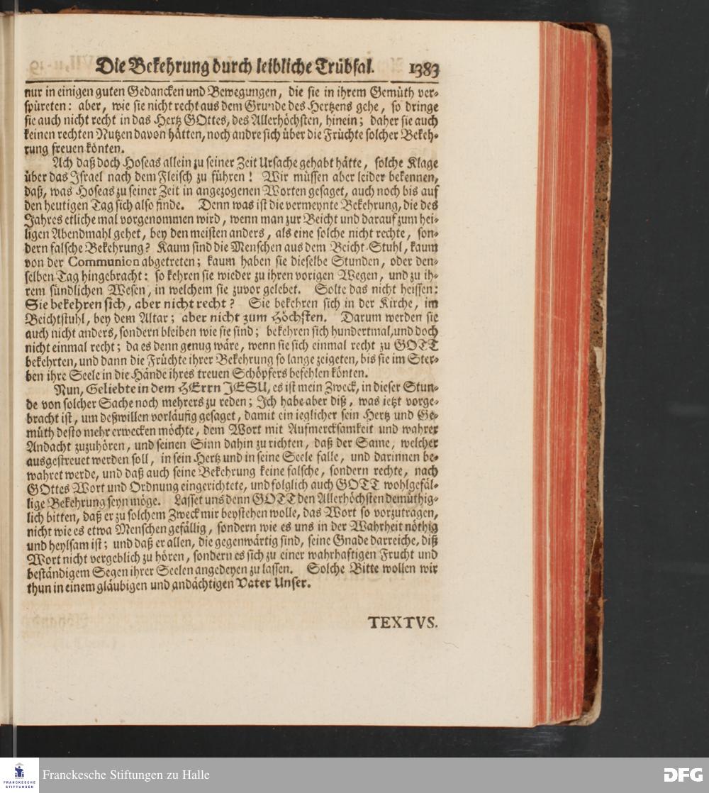 August Hermann Franckens, S.Theol.Prof.und Past. Sonn= und Fest=Tags=Predigten / Welche Theils in Halle, theils an verschiedenen auswärtigen Oertern, von wichtigen und auserlesenen Materien gehalten worden, Nebst Vorbereitung auf die hohen Feste und nützlichen Registern. Dritte Auflage. HALLE, gedruckt und verlegt im Wäysen=Hause MDCCXL. Mit Königl.Preuß.und Churfl.Brandenb.Privileg.