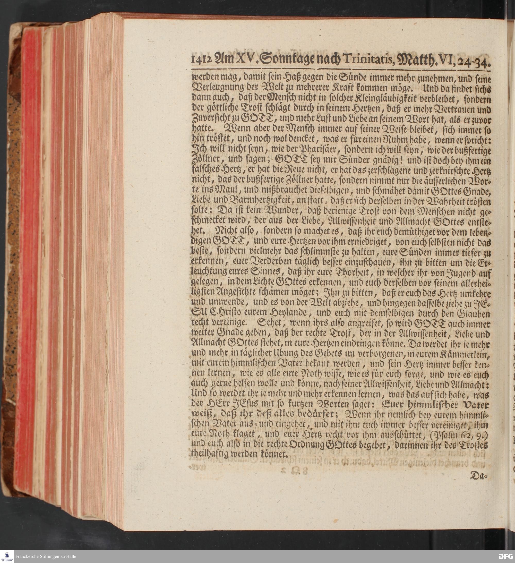 August Hermann Franckens, S.Theol.Prof.und Past. Sonn= und Fest=Tags=Predigten / Welche Theils in Halle, theils an verschiedenen auswärtigen Oertern, von wichtigen und auserlesenen Materien gehalten worden, Nebst Vorbereitung auf die hohen Feste und nützlichen Registern. Dritte Auflage. HALLE, gedruckt und verlegt im Wäysen=Hause MDCCXL. Mit Königl.Preuß.und Churfl.Brandenb.Privileg.