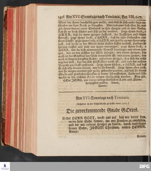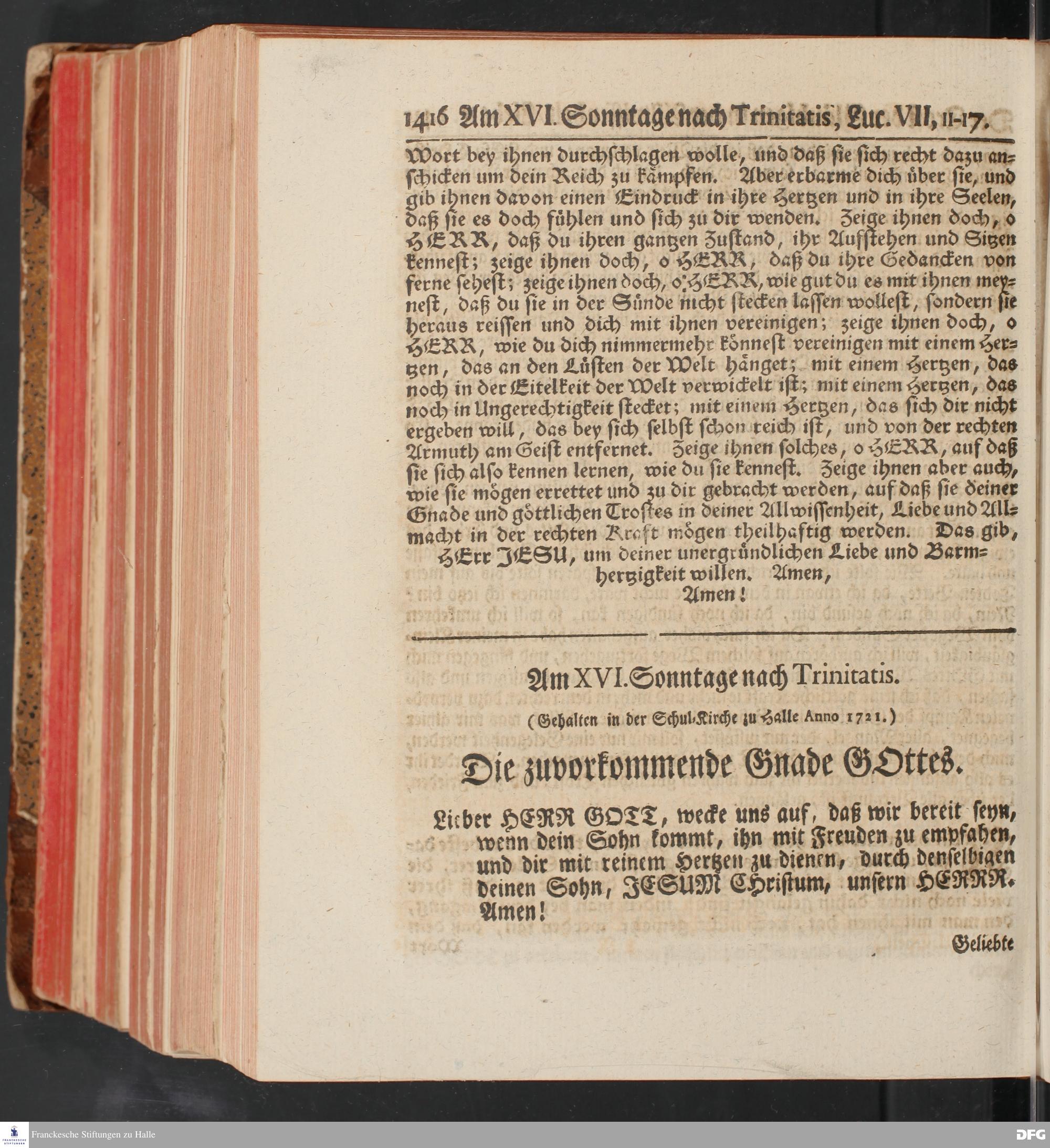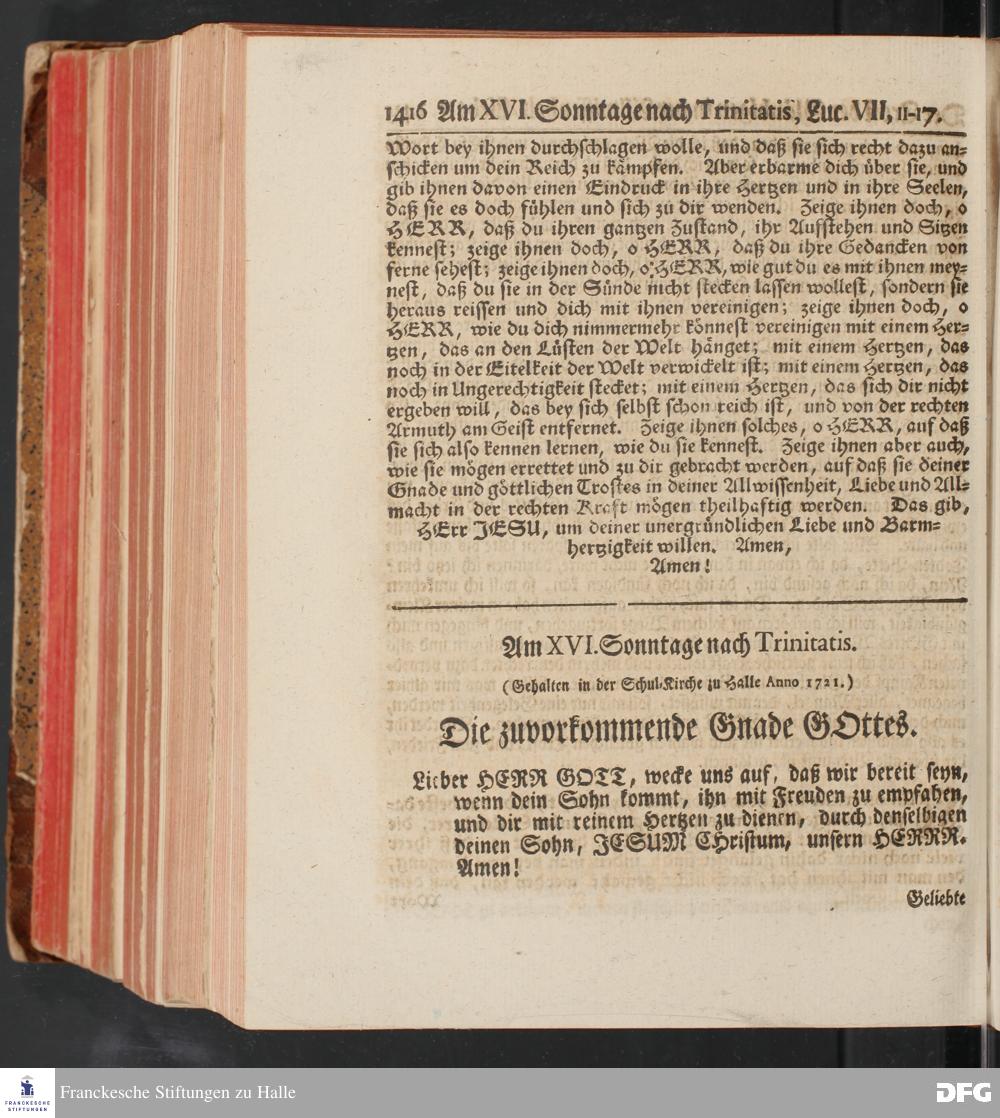 August Hermann Franckens, S.Theol.Prof.und Past. Sonn= und Fest=Tags=Predigten / Welche Theils in Halle, theils an verschiedenen auswärtigen Oertern, von wichtigen und auserlesenen Materien gehalten worden, Nebst Vorbereitung auf die hohen Feste und nützlichen Registern. Dritte Auflage. HALLE, gedruckt und verlegt im Wäysen=Hause MDCCXL. Mit Königl.Preuß.und Churfl.Brandenb.Privileg.