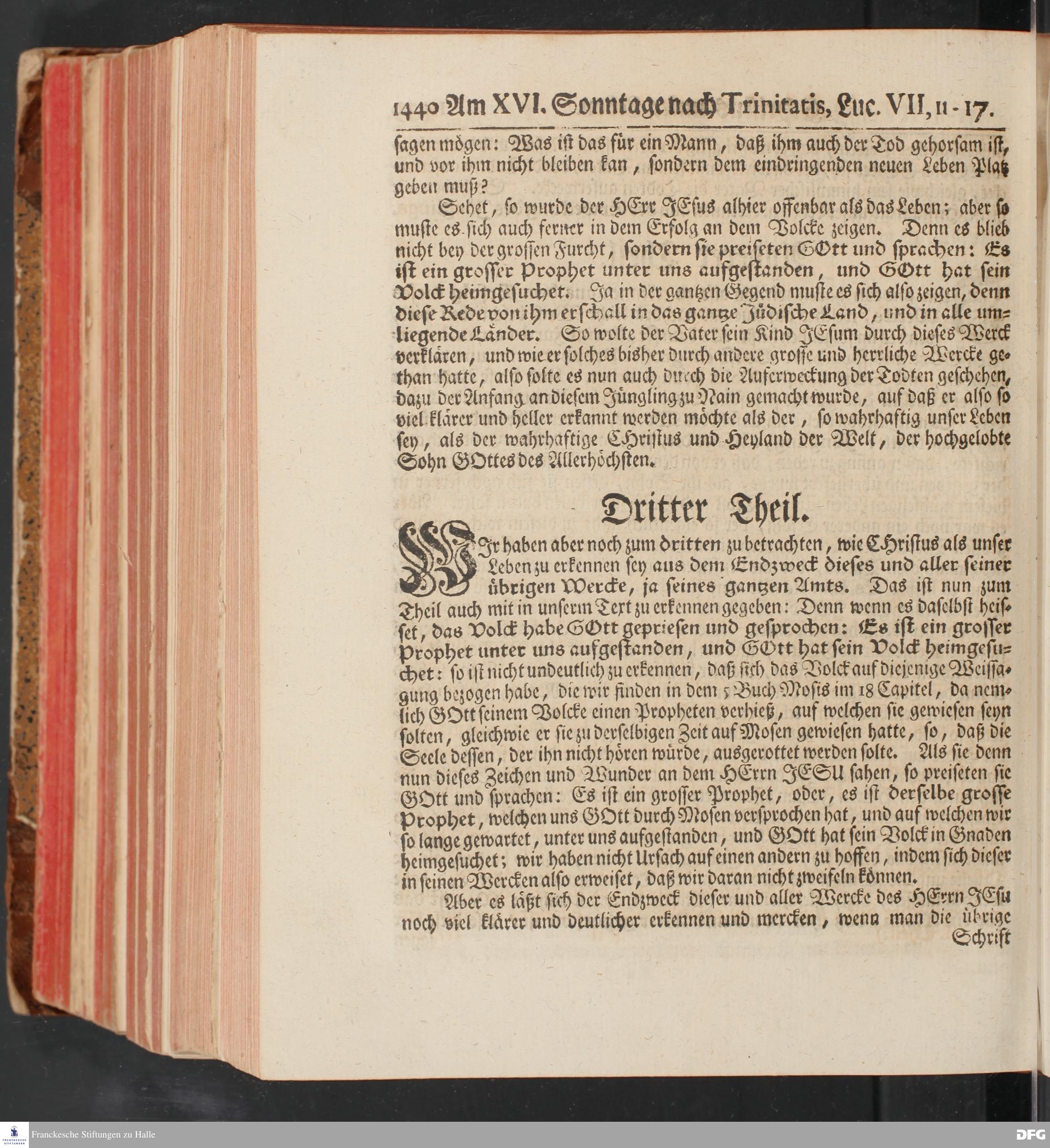 August Hermann Franckens, S.Theol.Prof.und Past. Sonn= und Fest=Tags=Predigten / Welche Theils in Halle, theils an verschiedenen auswärtigen Oertern, von wichtigen und auserlesenen Materien gehalten worden, Nebst Vorbereitung auf die hohen Feste und nützlichen Registern. Dritte Auflage. HALLE, gedruckt und verlegt im Wäysen=Hause MDCCXL. Mit Königl.Preuß.und Churfl.Brandenb.Privileg.