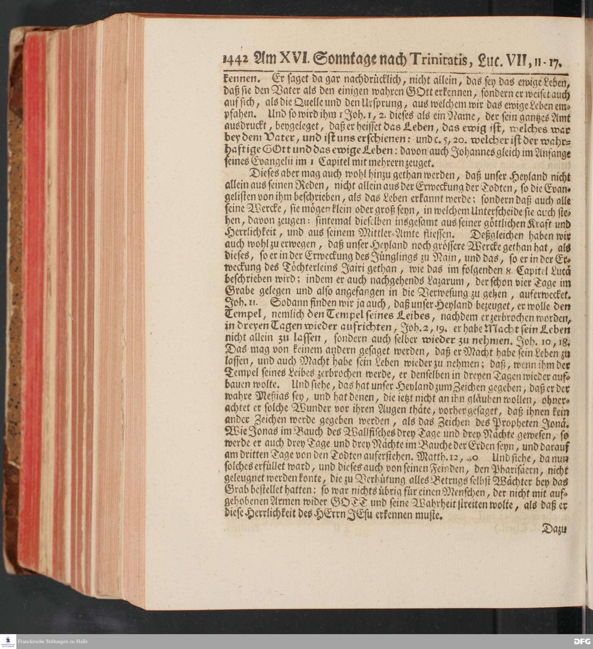 August Hermann Franckens, S.Theol.Prof.und Past. Sonn= und Fest=Tags=Predigten / Welche Theils in Halle, theils an verschiedenen auswärtigen Oertern, von wichtigen und auserlesenen Materien gehalten worden, Nebst Vorbereitung auf die hohen Feste und nützlichen Registern. Dritte Auflage. HALLE, gedruckt und verlegt im Wäysen=Hause MDCCXL. Mit Königl.Preuß.und Churfl.Brandenb.Privileg.
