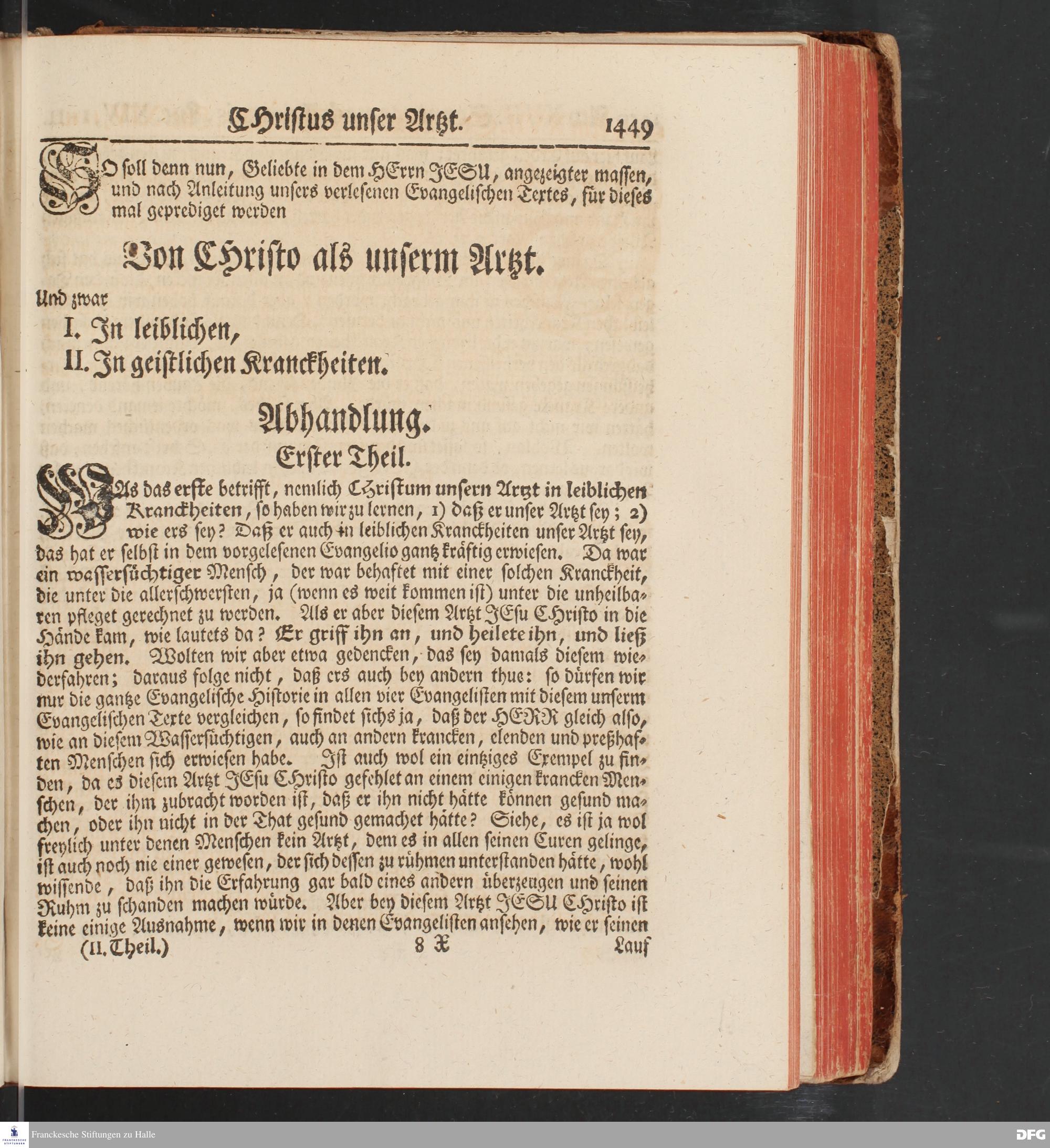 August Hermann Franckens, S.Theol.Prof.und Past. Sonn= und Fest=Tags=Predigten / Welche Theils in Halle, theils an verschiedenen auswärtigen Oertern, von wichtigen und auserlesenen Materien gehalten worden, Nebst Vorbereitung auf die hohen Feste und nützlichen Registern. Dritte Auflage. HALLE, gedruckt und verlegt im Wäysen=Hause MDCCXL. Mit Königl.Preuß.und Churfl.Brandenb.Privileg.