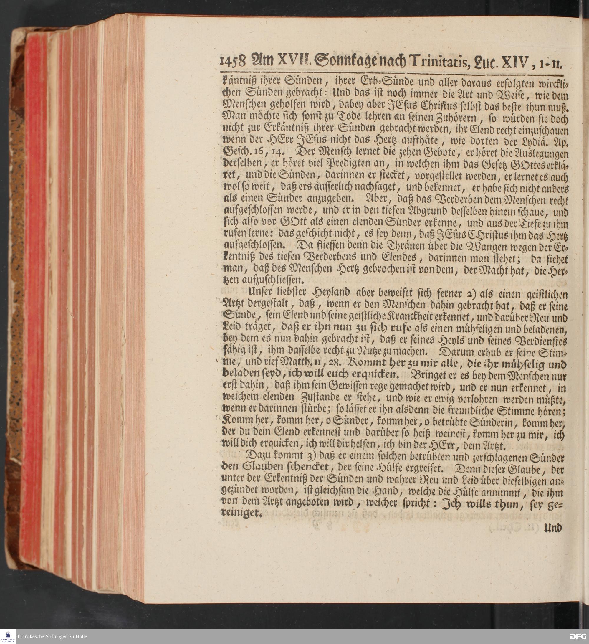August Hermann Franckens, S.Theol.Prof.und Past. Sonn= und Fest=Tags=Predigten / Welche Theils in Halle, theils an verschiedenen auswärtigen Oertern, von wichtigen und auserlesenen Materien gehalten worden, Nebst Vorbereitung auf die hohen Feste und nützlichen Registern. Dritte Auflage. HALLE, gedruckt und verlegt im Wäysen=Hause MDCCXL. Mit Königl.Preuß.und Churfl.Brandenb.Privileg.