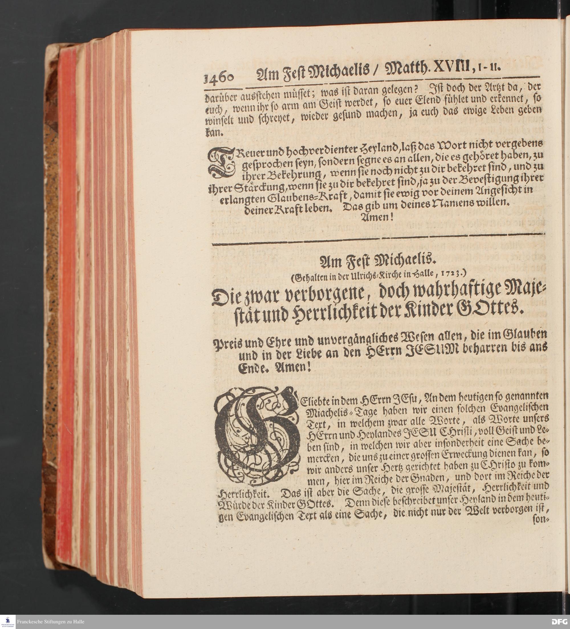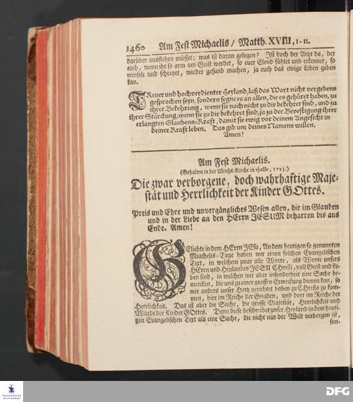 August Hermann Franckens, S.Theol.Prof.und Past. Sonn= und Fest=Tags=Predigten / Welche Theils in Halle, theils an verschiedenen auswärtigen Oertern, von wichtigen und auserlesenen Materien gehalten worden, Nebst Vorbereitung auf die hohen Feste und nützlichen Registern. Dritte Auflage. HALLE, gedruckt und verlegt im Wäysen=Hause MDCCXL. Mit Königl.Preuß.und Churfl.Brandenb.Privileg.
