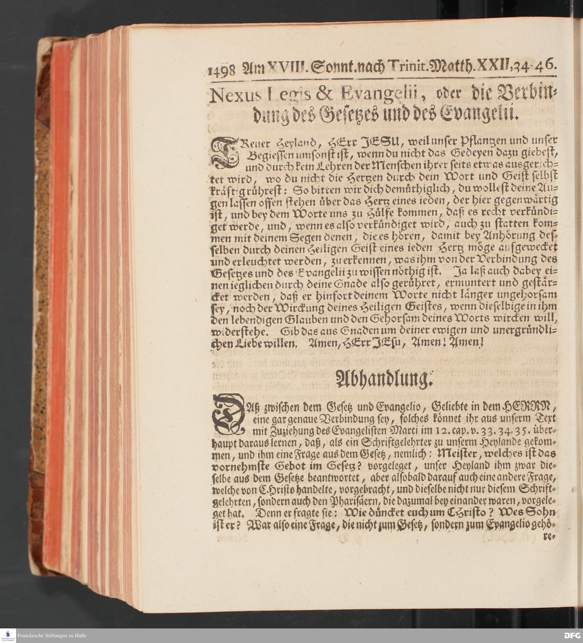 August Hermann Franckens, S.Theol.Prof.und Past. Sonn= und Fest=Tags=Predigten / Welche Theils in Halle, theils an verschiedenen auswärtigen Oertern, von wichtigen und auserlesenen Materien gehalten worden, Nebst Vorbereitung auf die hohen Feste und nützlichen Registern. Dritte Auflage. HALLE, gedruckt und verlegt im Wäysen=Hause MDCCXL. Mit Königl.Preuß.und Churfl.Brandenb.Privileg.