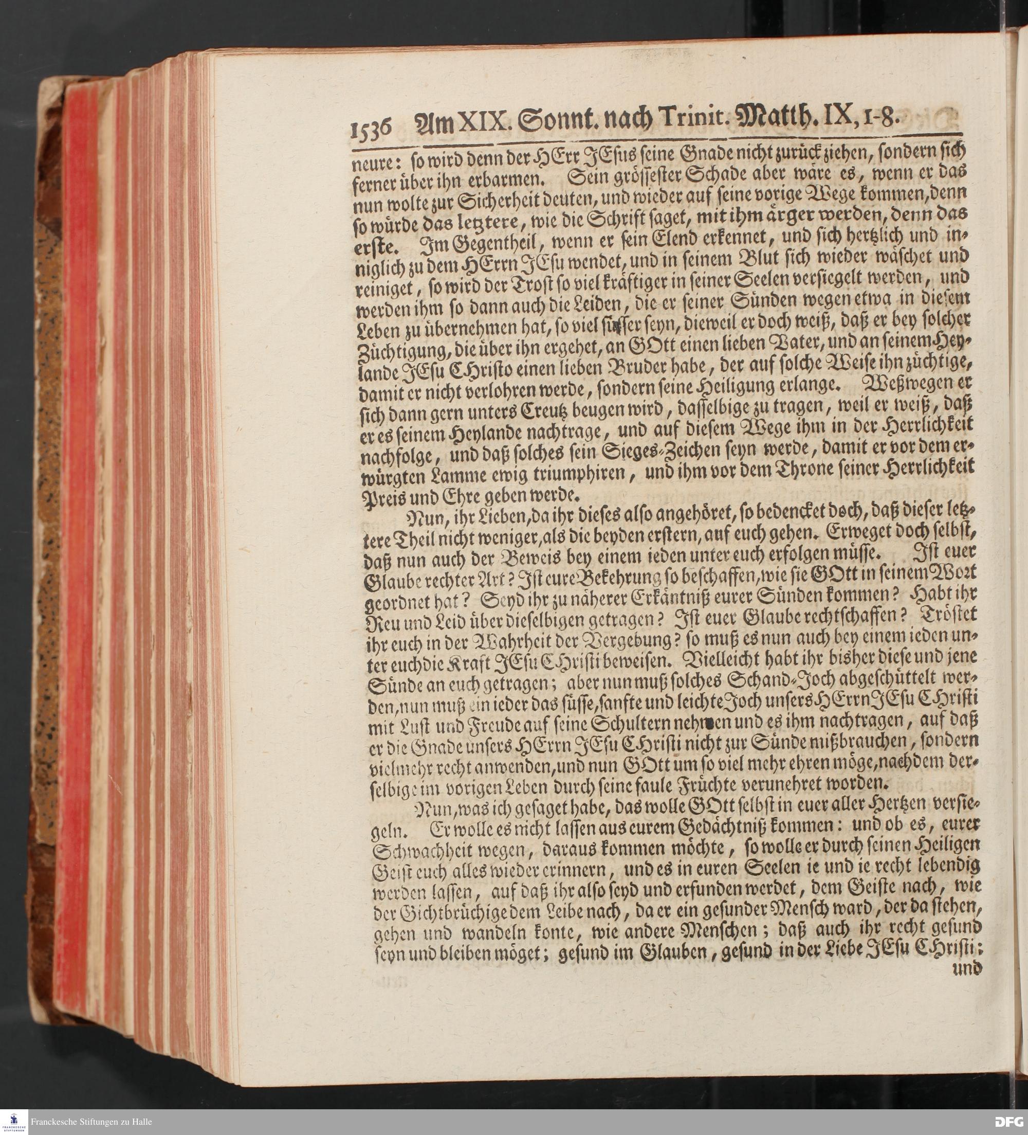 August Hermann Franckens, S.Theol.Prof.und Past. Sonn= und Fest=Tags=Predigten / Welche Theils in Halle, theils an verschiedenen auswärtigen Oertern, von wichtigen und auserlesenen Materien gehalten worden, Nebst Vorbereitung auf die hohen Feste und nützlichen Registern. Dritte Auflage. HALLE, gedruckt und verlegt im Wäysen=Hause MDCCXL. Mit Königl.Preuß.und Churfl.Brandenb.Privileg.