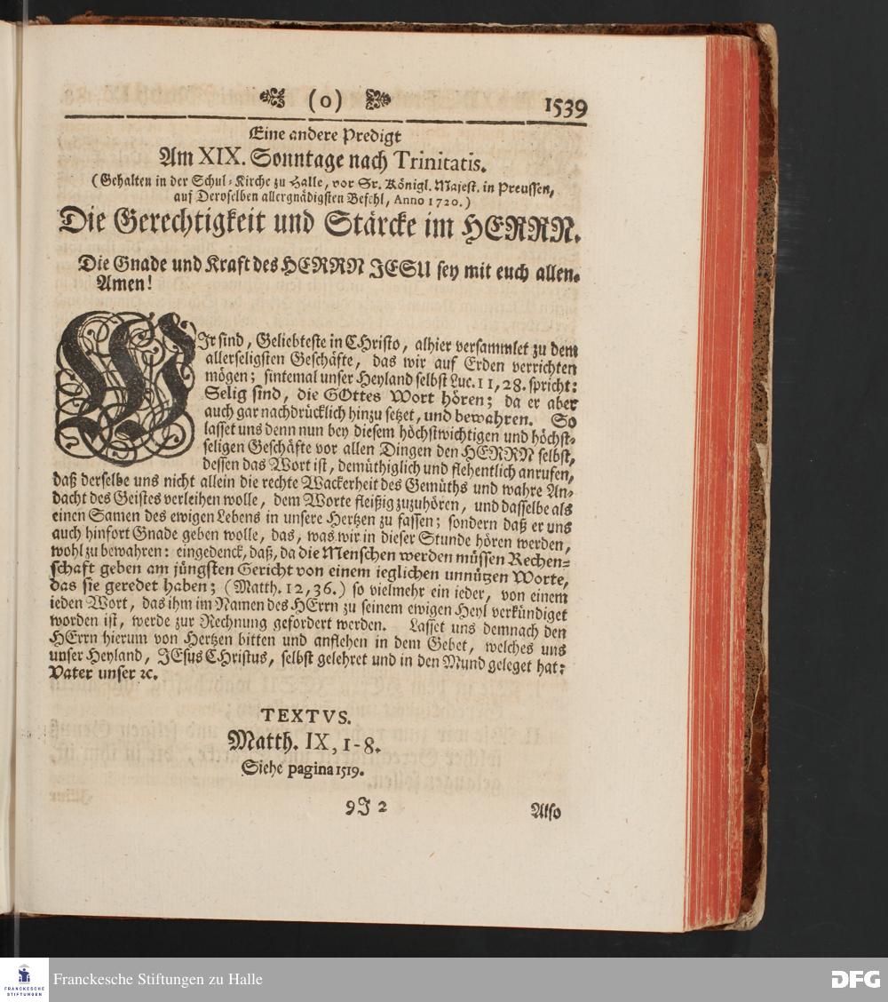 August Hermann Franckens, S.Theol.Prof.und Past. Sonn= und Fest=Tags=Predigten / Welche Theils in Halle, theils an verschiedenen auswärtigen Oertern, von wichtigen und auserlesenen Materien gehalten worden, Nebst Vorbereitung auf die hohen Feste und nützlichen Registern. Dritte Auflage. HALLE, gedruckt und verlegt im Wäysen=Hause MDCCXL. Mit Königl.Preuß.und Churfl.Brandenb.Privileg.