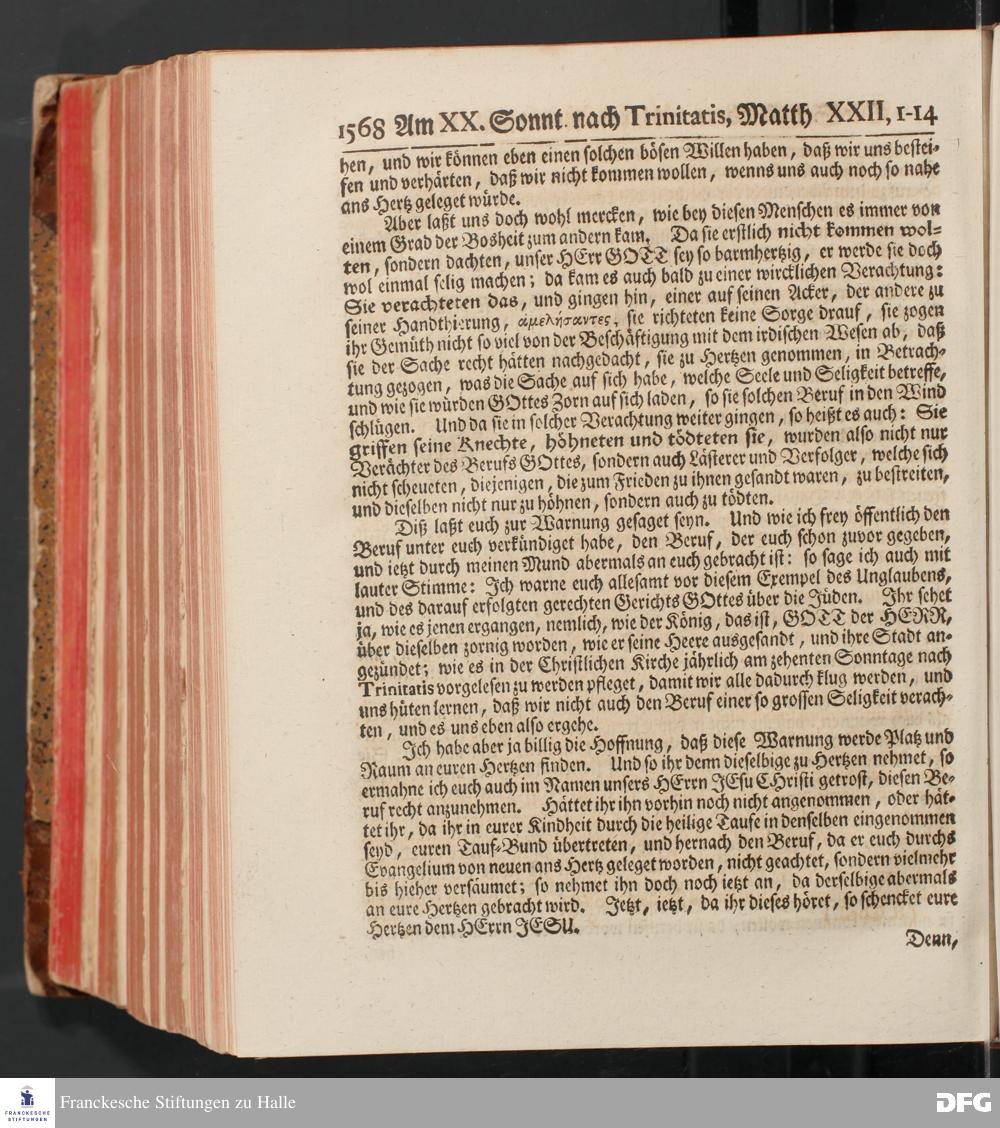 August Hermann Franckens, S.Theol.Prof.und Past. Sonn= und Fest=Tags=Predigten / Welche Theils in Halle, theils an verschiedenen auswärtigen Oertern, von wichtigen und auserlesenen Materien gehalten worden, Nebst Vorbereitung auf die hohen Feste und nützlichen Registern. Dritte Auflage. HALLE, gedruckt und verlegt im Wäysen=Hause MDCCXL. Mit Königl.Preuß.und Churfl.Brandenb.Privileg.