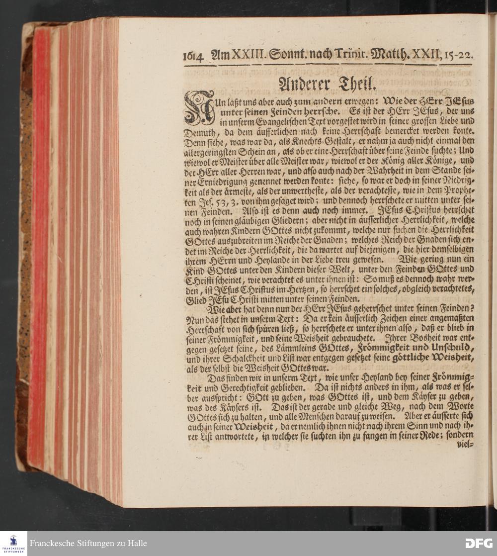 August Hermann Franckens, S.Theol.Prof.und Past. Sonn= und Fest=Tags=Predigten / Welche Theils in Halle, theils an verschiedenen auswärtigen Oertern, von wichtigen und auserlesenen Materien gehalten worden, Nebst Vorbereitung auf die hohen Feste und nützlichen Registern. Dritte Auflage. HALLE, gedruckt und verlegt im Wäysen=Hause MDCCXL. Mit Königl.Preuß.und Churfl.Brandenb.Privileg.