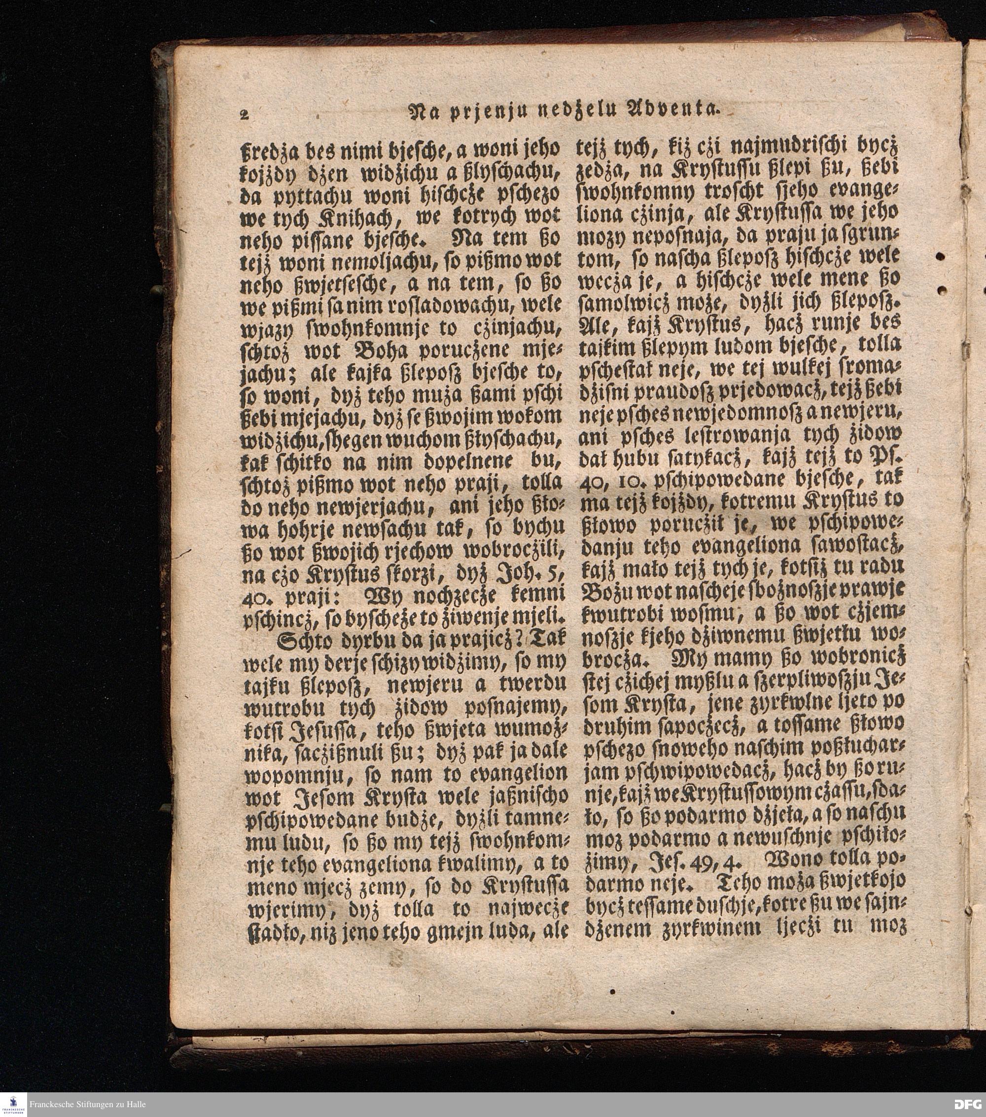 Prjedowanja na nedzelje a ßwjate dny, dzerzane a we njemskej reczi wohndate wot Knesa August Herrmann Franki [!] ßwojim czaßu Duchomneho w Hali na zyrkwi Ulricha, kotrez je do ßerskej reczje pschelozai Ernst Rychtar, Duchomny Roßaczizy, a czischczecz dal Jan Christian Samuel Pilz, Knihowwjasar Lubiju. w lieczi 1826.