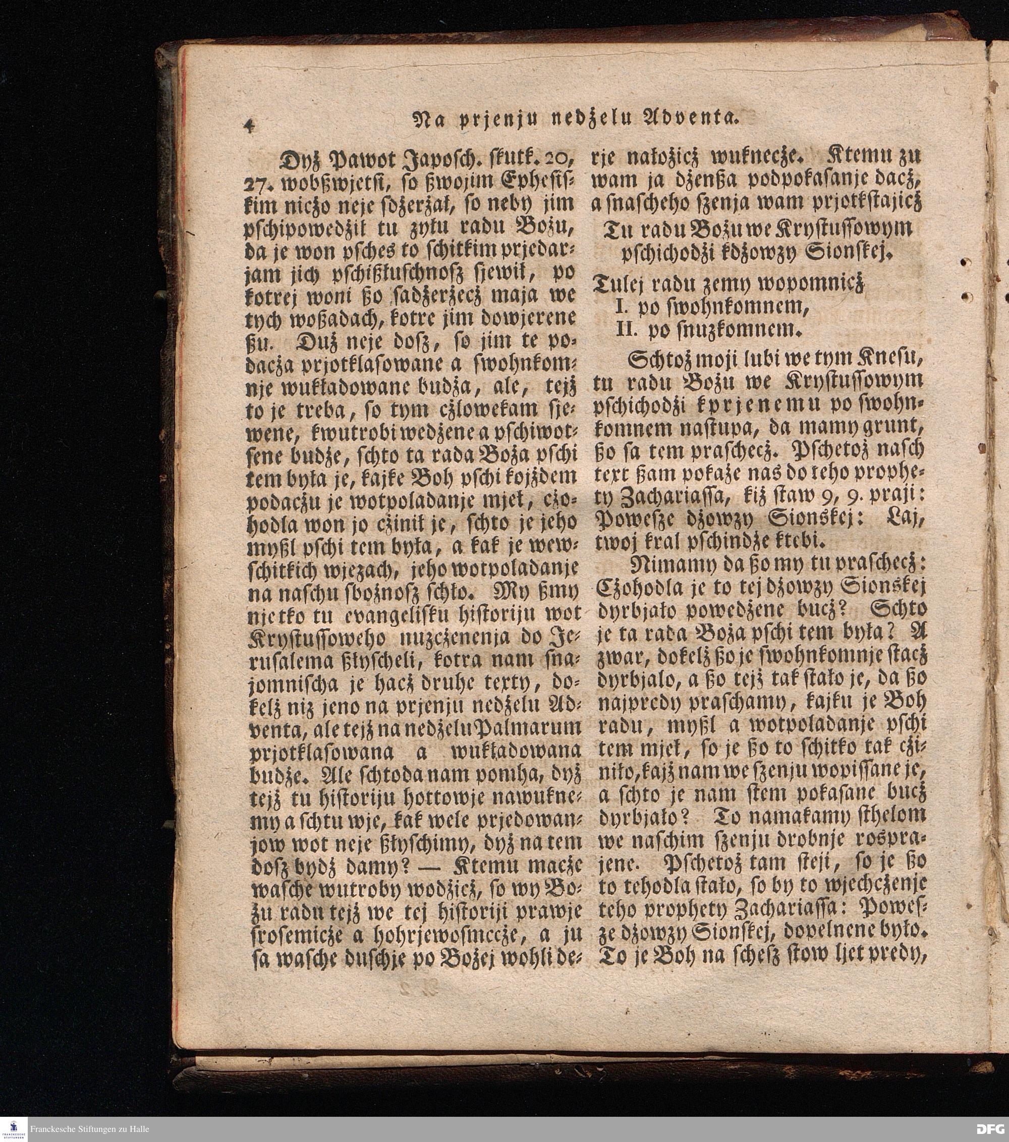 Prjedowanja na nedzelje a ßwjate dny, dzerzane a we njemskej reczi wohndate wot Knesa August Herrmann Franki [!] ßwojim czaßu Duchomneho w Hali na zyrkwi Ulricha, kotrez je do ßerskej reczje pschelozai Ernst Rychtar, Duchomny Roßaczizy, a czischczecz dal Jan Christian Samuel Pilz, Knihowwjasar Lubiju. w lieczi 1826.