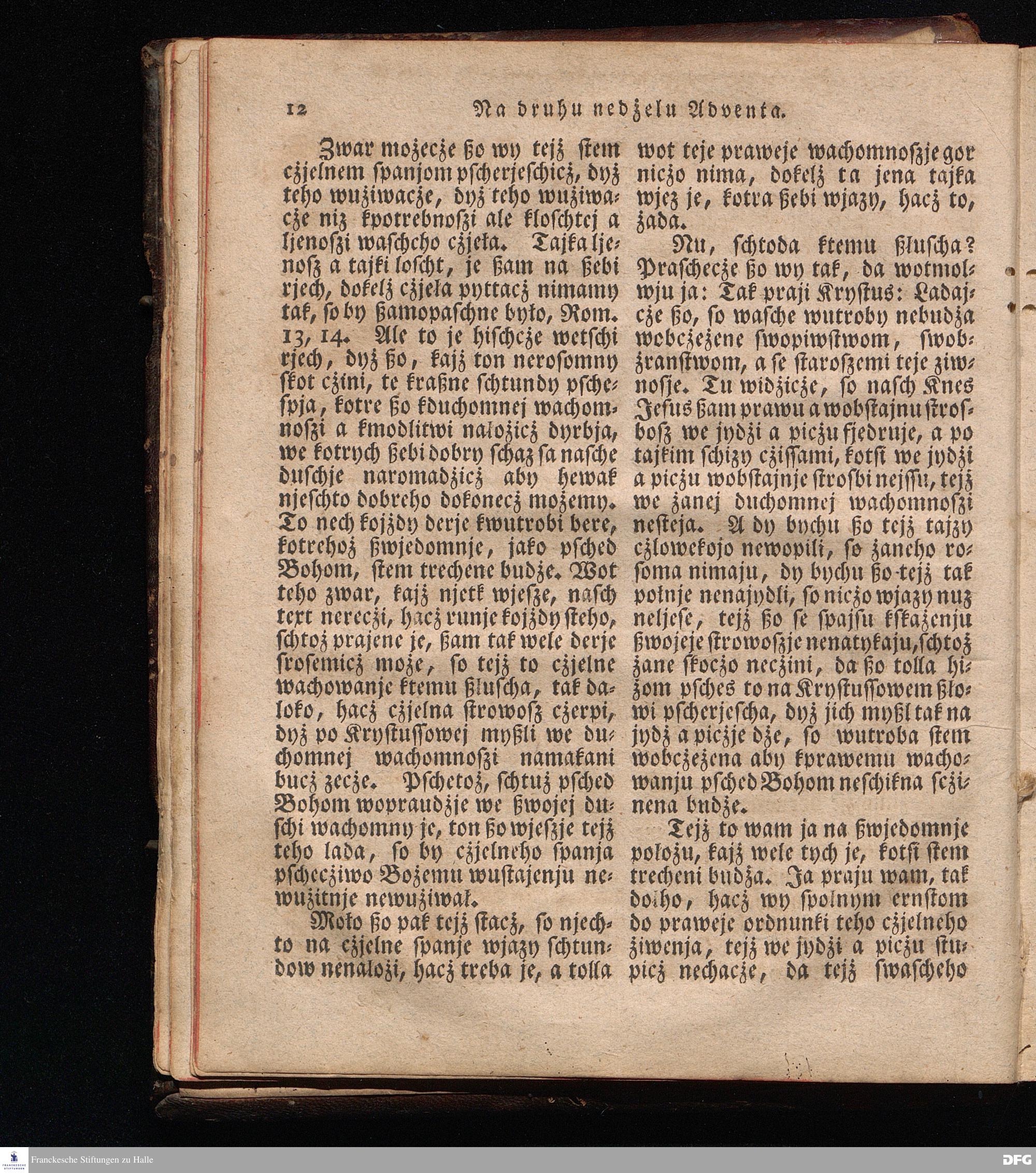 Prjedowanja na nedzelje a ßwjate dny, dzerzane a we njemskej reczi wohndate wot Knesa August Herrmann Franki [!] ßwojim czaßu Duchomneho w Hali na zyrkwi Ulricha, kotrez je do ßerskej reczje pschelozai Ernst Rychtar, Duchomny Roßaczizy, a czischczecz dal Jan Christian Samuel Pilz, Knihowwjasar Lubiju. w lieczi 1826.