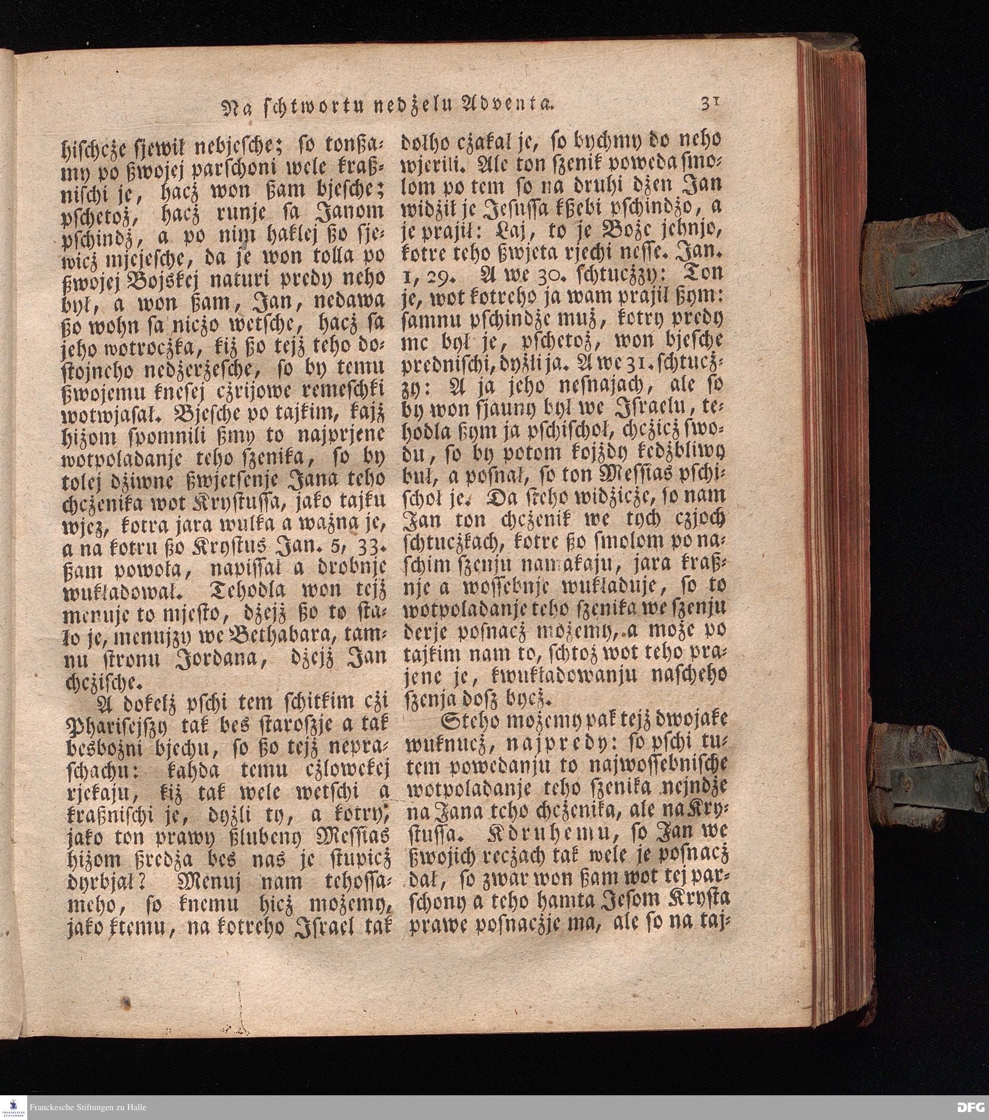 Prjedowanja na nedzelje a ßwjate dny, dzerzane a we njemskej reczi wohndate wot Knesa August Herrmann Franki [!] ßwojim czaßu Duchomneho w Hali na zyrkwi Ulricha, kotrez je do ßerskej reczje pschelozai Ernst Rychtar, Duchomny Roßaczizy, a czischczecz dal Jan Christian Samuel Pilz, Knihowwjasar Lubiju. w lieczi 1826.