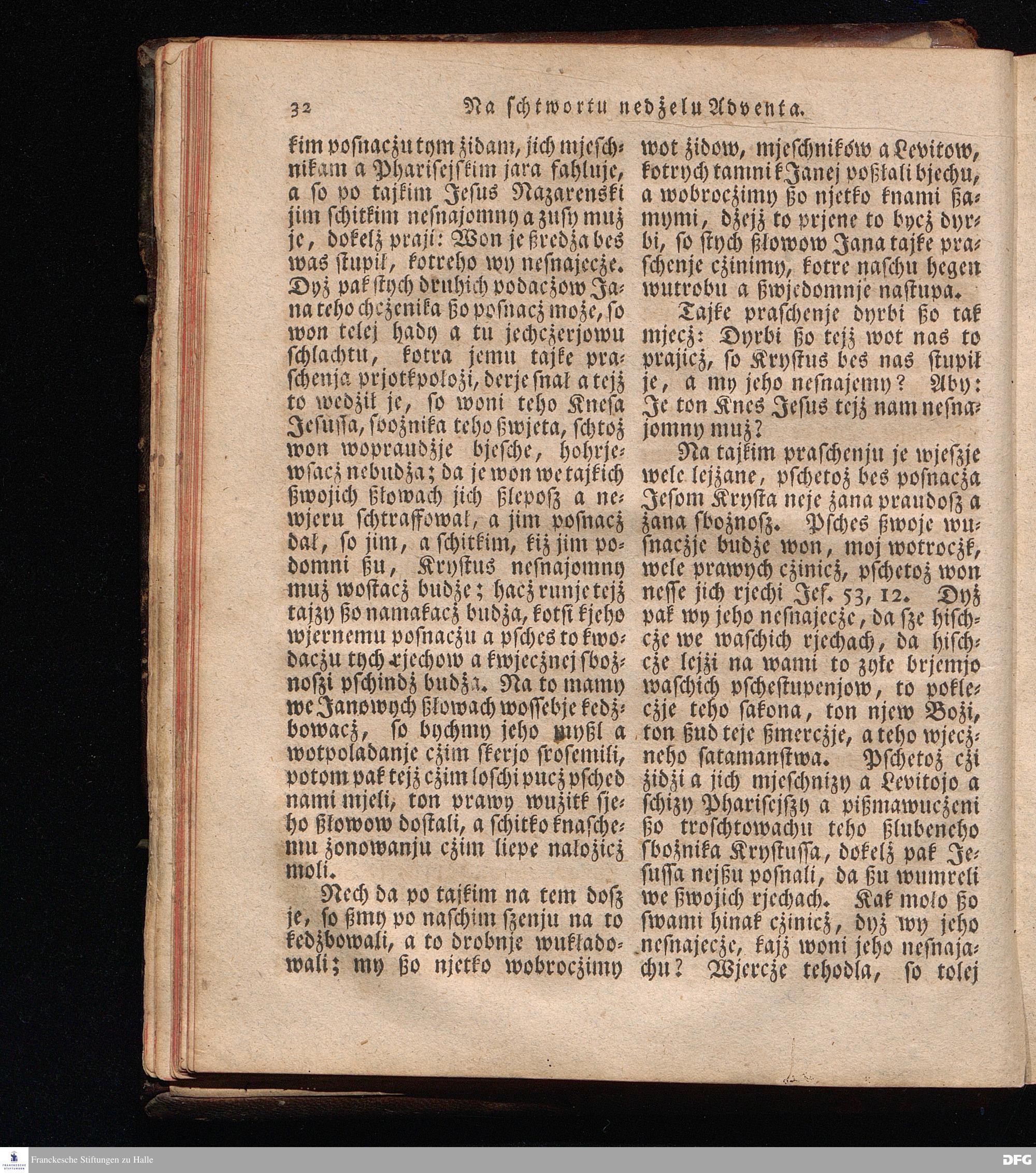Prjedowanja na nedzelje a ßwjate dny, dzerzane a we njemskej reczi wohndate wot Knesa August Herrmann Franki [!] ßwojim czaßu Duchomneho w Hali na zyrkwi Ulricha, kotrez je do ßerskej reczje pschelozai Ernst Rychtar, Duchomny Roßaczizy, a czischczecz dal Jan Christian Samuel Pilz, Knihowwjasar Lubiju. w lieczi 1826.