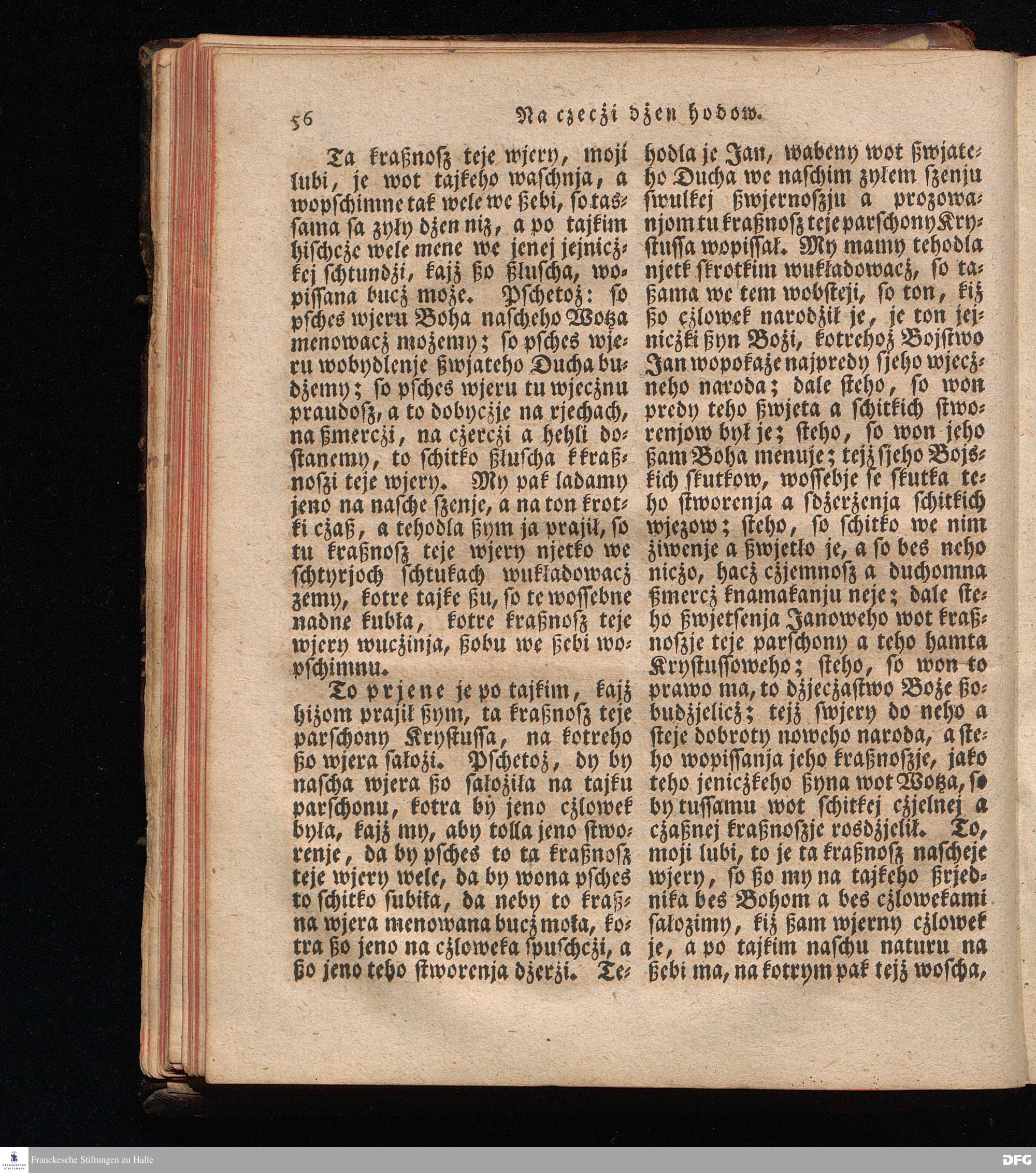 Prjedowanja na nedzelje a ßwjate dny, dzerzane a we njemskej reczi wohndate wot Knesa August Herrmann Franki [!] ßwojim czaßu Duchomneho w Hali na zyrkwi Ulricha, kotrez je do ßerskej reczje pschelozai Ernst Rychtar, Duchomny Roßaczizy, a czischczecz dal Jan Christian Samuel Pilz, Knihowwjasar Lubiju. w lieczi 1826.