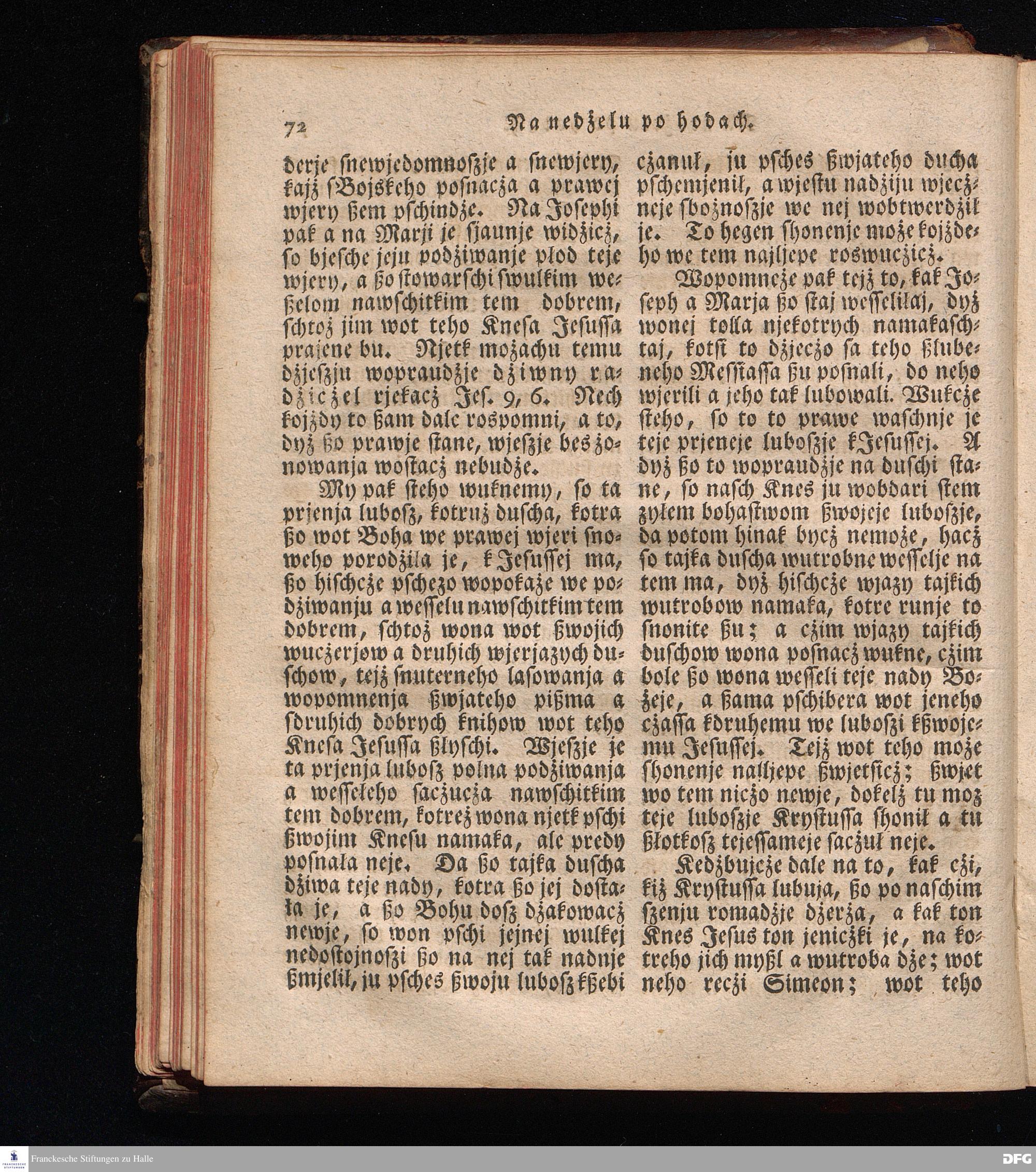 Prjedowanja na nedzelje a ßwjate dny, dzerzane a we njemskej reczi wohndate wot Knesa August Herrmann Franki [!] ßwojim czaßu Duchomneho w Hali na zyrkwi Ulricha, kotrez je do ßerskej reczje pschelozai Ernst Rychtar, Duchomny Roßaczizy, a czischczecz dal Jan Christian Samuel Pilz, Knihowwjasar Lubiju. w lieczi 1826.