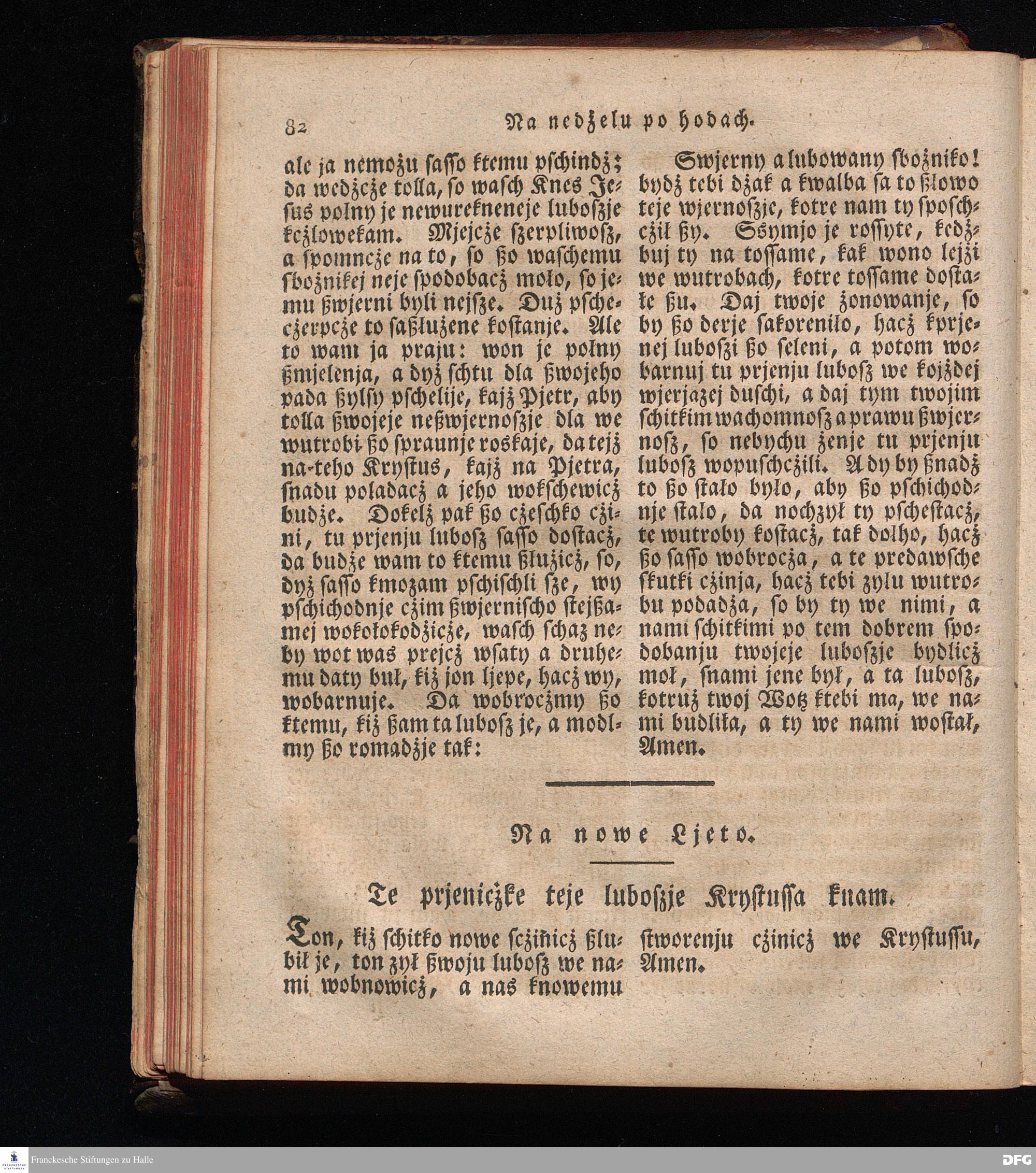 Prjedowanja na nedzelje a ßwjate dny, dzerzane a we njemskej reczi wohndate wot Knesa August Herrmann Franki [!] ßwojim czaßu Duchomneho w Hali na zyrkwi Ulricha, kotrez je do ßerskej reczje pschelozai Ernst Rychtar, Duchomny Roßaczizy, a czischczecz dal Jan Christian Samuel Pilz, Knihowwjasar Lubiju. w lieczi 1826.