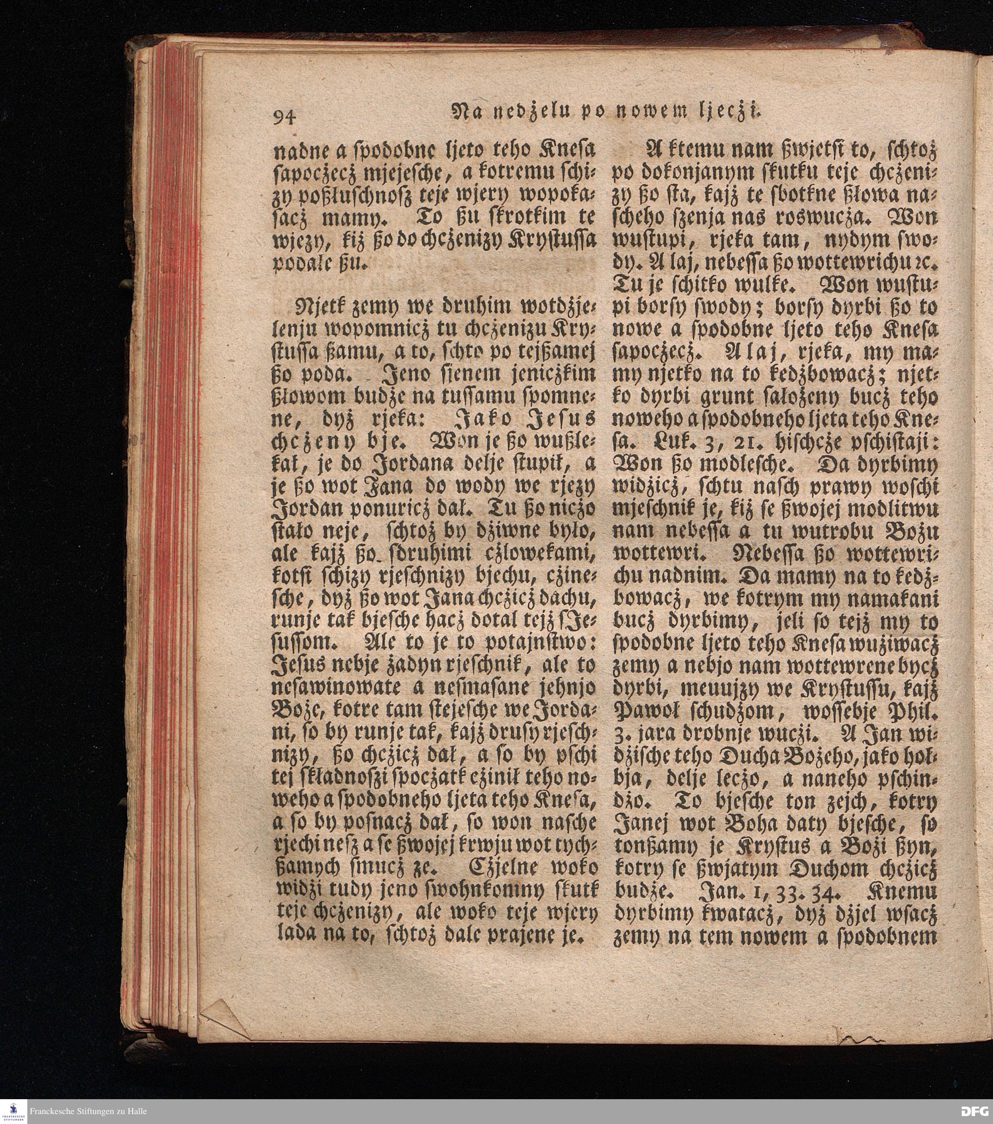 Prjedowanja na nedzelje a ßwjate dny, dzerzane a we njemskej reczi wohndate wot Knesa August Herrmann Franki [!] ßwojim czaßu Duchomneho w Hali na zyrkwi Ulricha, kotrez je do ßerskej reczje pschelozai Ernst Rychtar, Duchomny Roßaczizy, a czischczecz dal Jan Christian Samuel Pilz, Knihowwjasar Lubiju. w lieczi 1826.